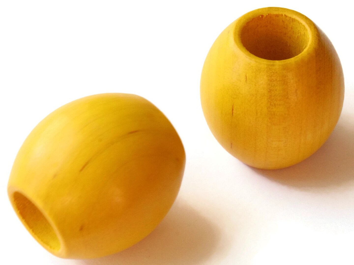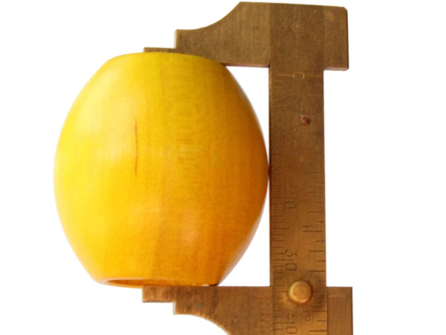 2 36mm Yellow Wood Oval Large Hole Beads Vintage Wooden Barrel Beads Chunky Macrame Beads