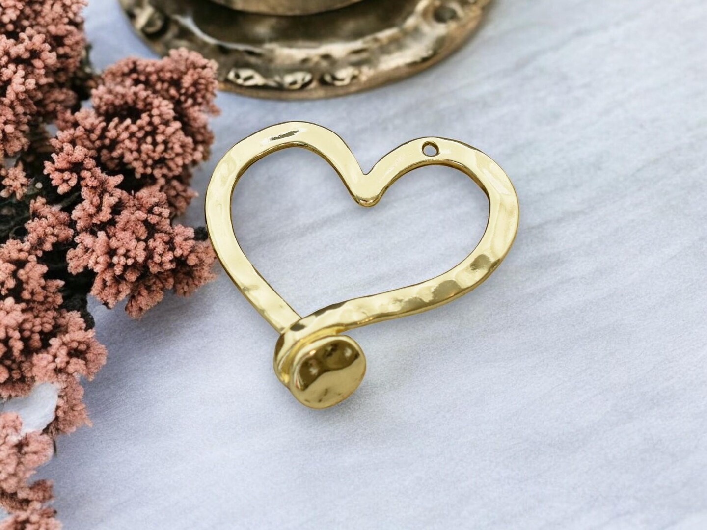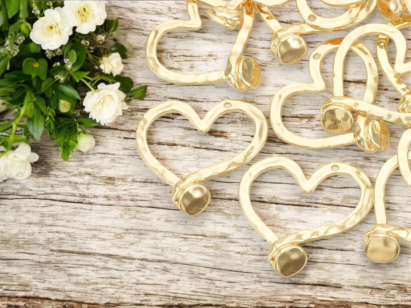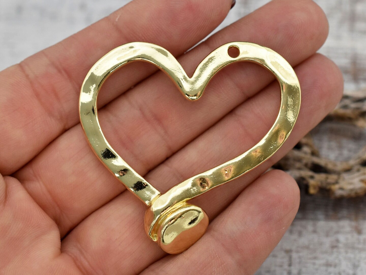 *2* 49x48mm Gold Hammered Heart Pendants