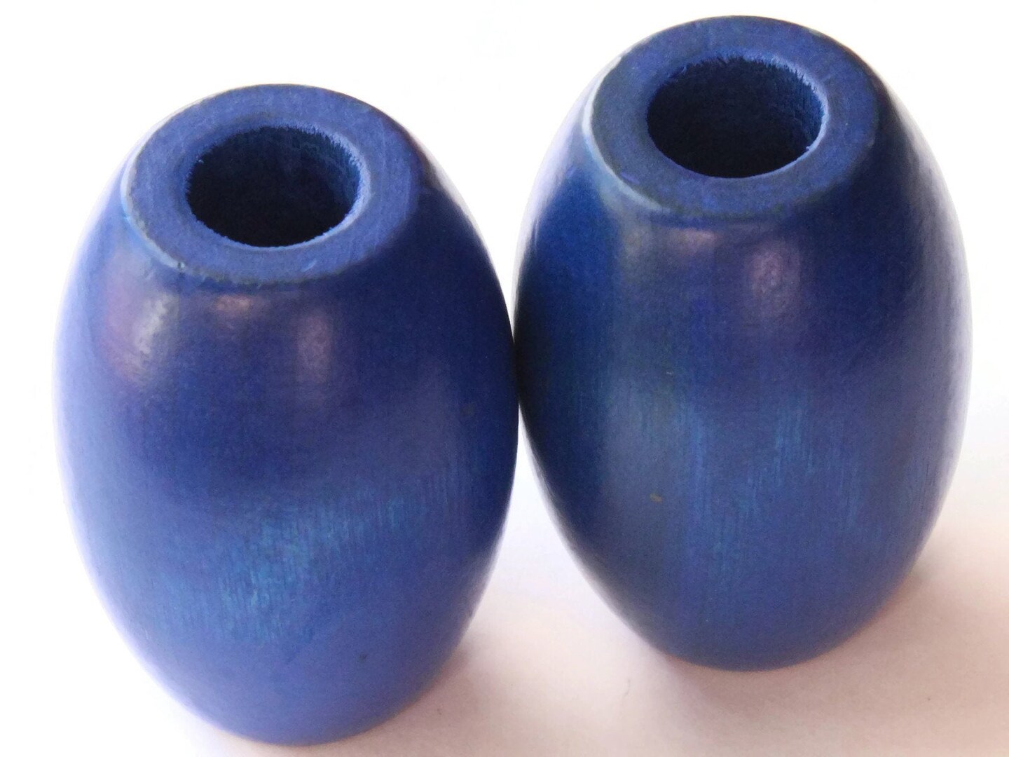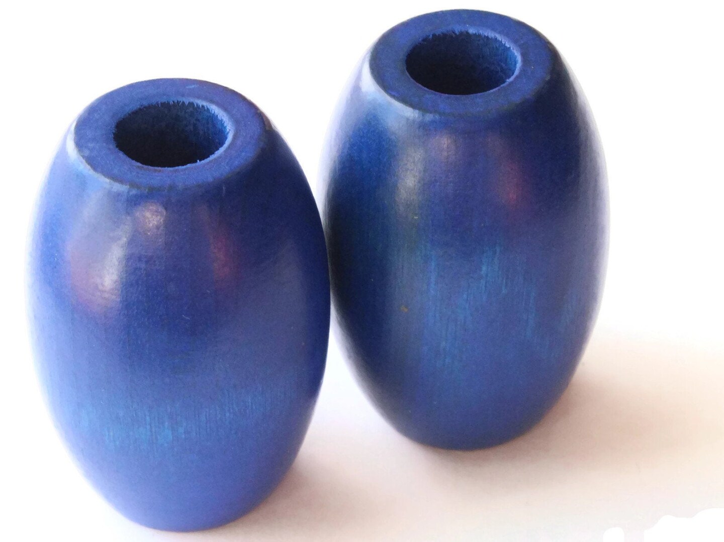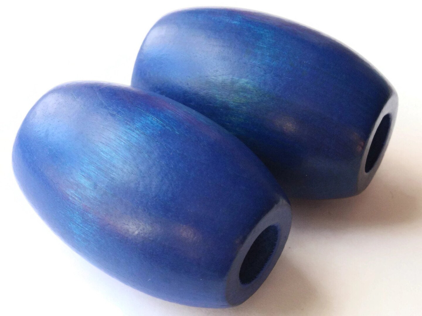 2 53mm Ridiculously Huge Blue Wood Barrel Beads Vintage Macrame Beads