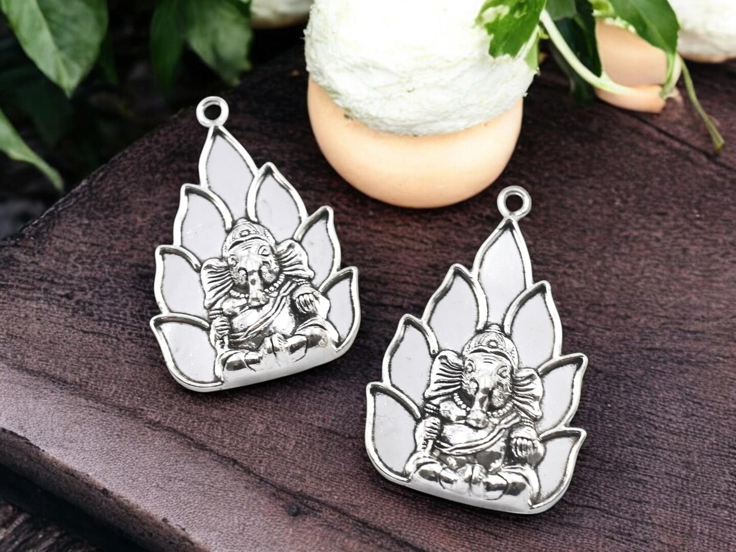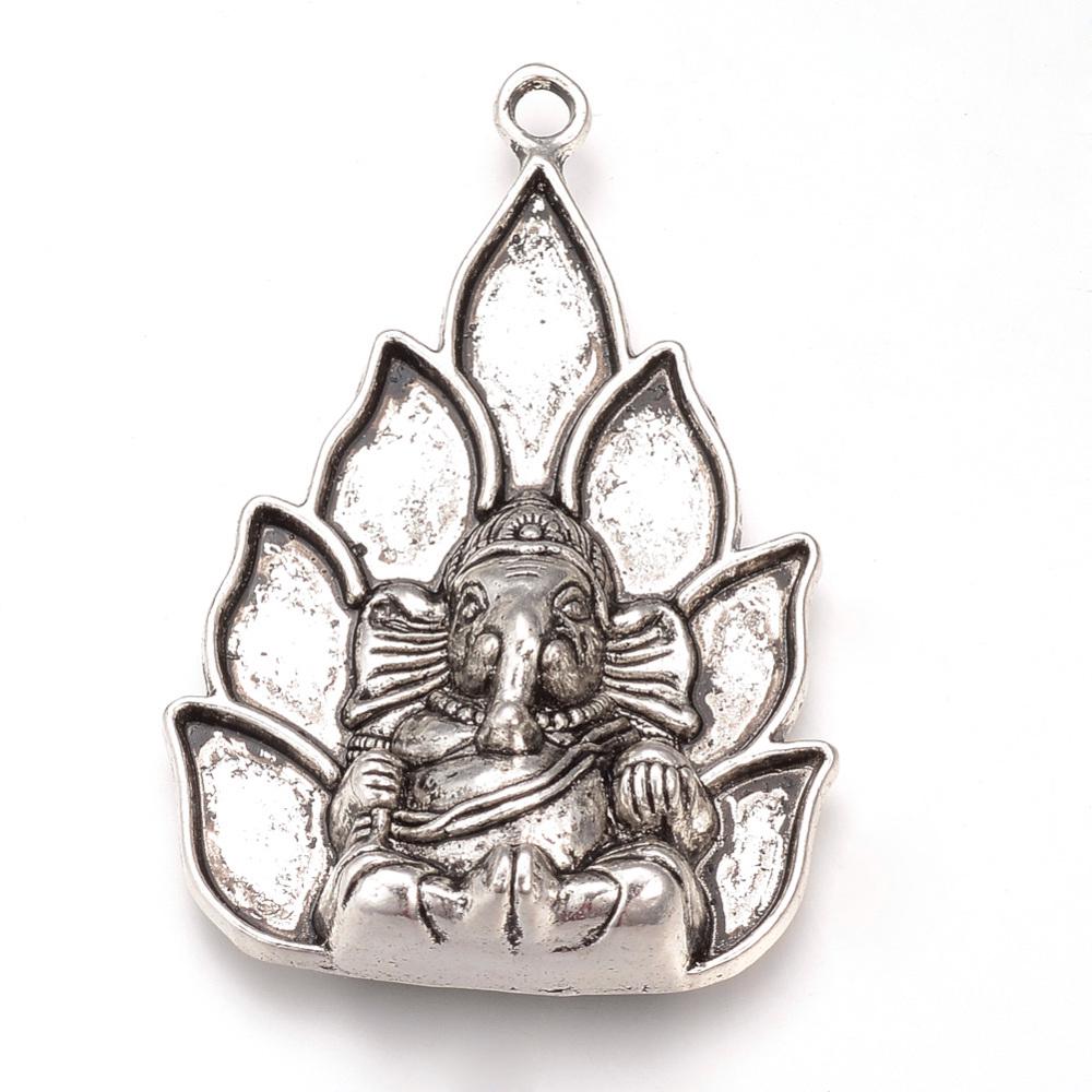 *2* 54x36x11mm Antique Silver Elephant Ganesh Pendants