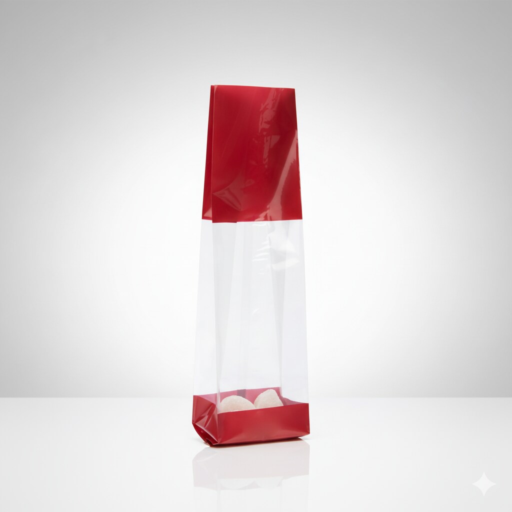 2 5/8" x 1 7/8" x 10 3/4" Red Bands Printed Cello Gusset Bags