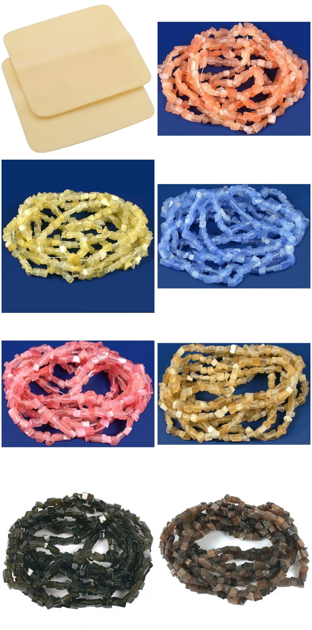 2 Beading Mats 8" x 8" & 7 Strands Glass & Chip Beads Various Colors and Sizes