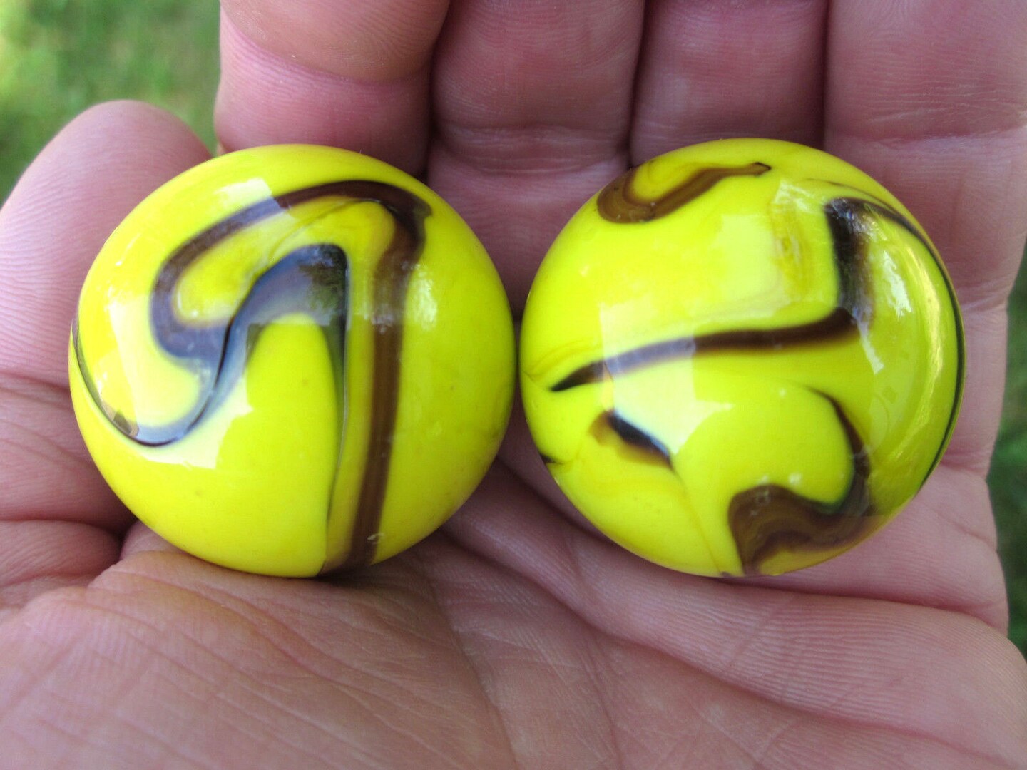 2 Boulders 35mm BUMBLE BEE Marbles glass ball Yellow/Brown Giant Swirl