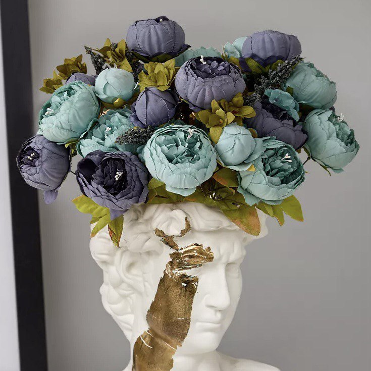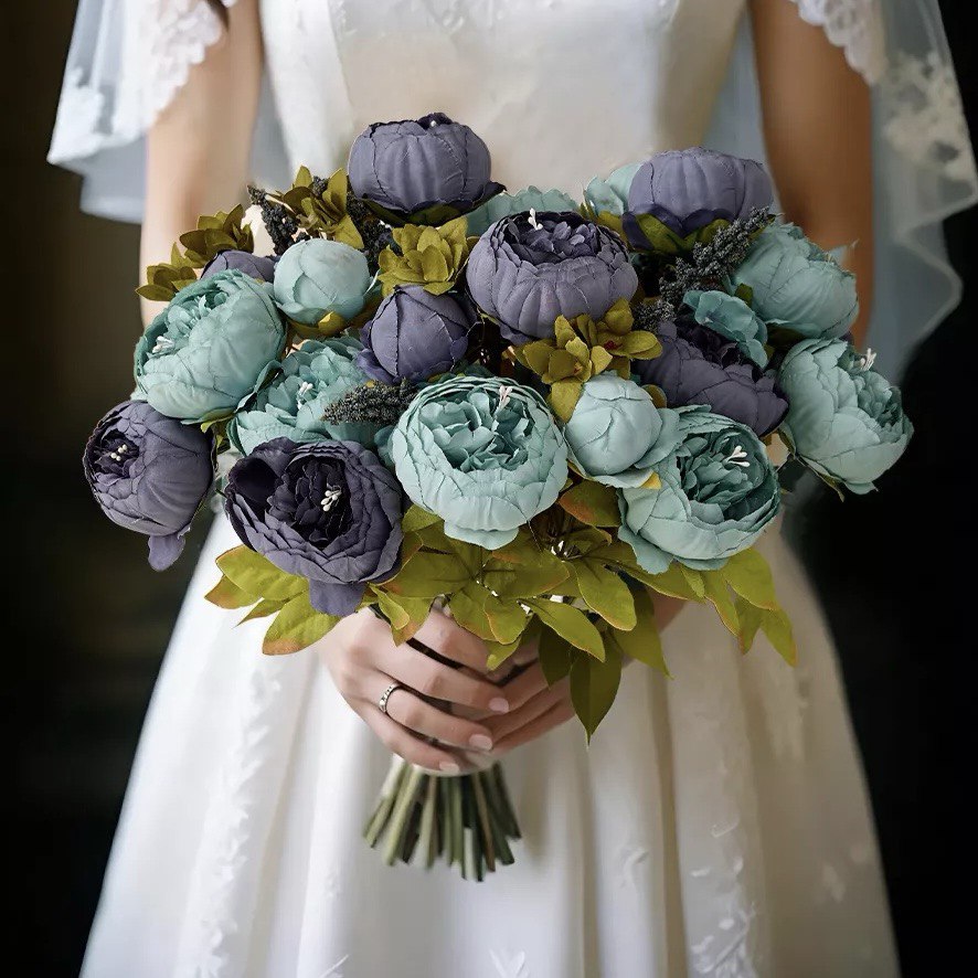2 Bouquets Vintage Artificial Peonies Silk Peony Flowers for Wedding Bridal Home Décor Beautiful Floral Centerpiece Arrangement, Blue