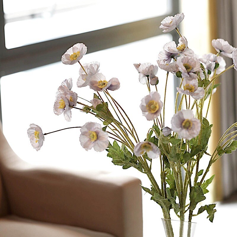 2 Bushes 33" Artificial Poppy Flowers – Long Stem Silk Sprays for Vase & Party Decor