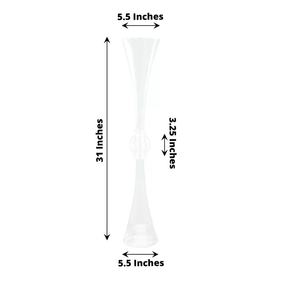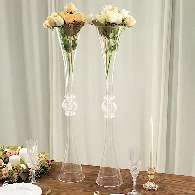 2 Clear 31" Plastic Reversible Trumpet Flower Vases Crystals Party Event
