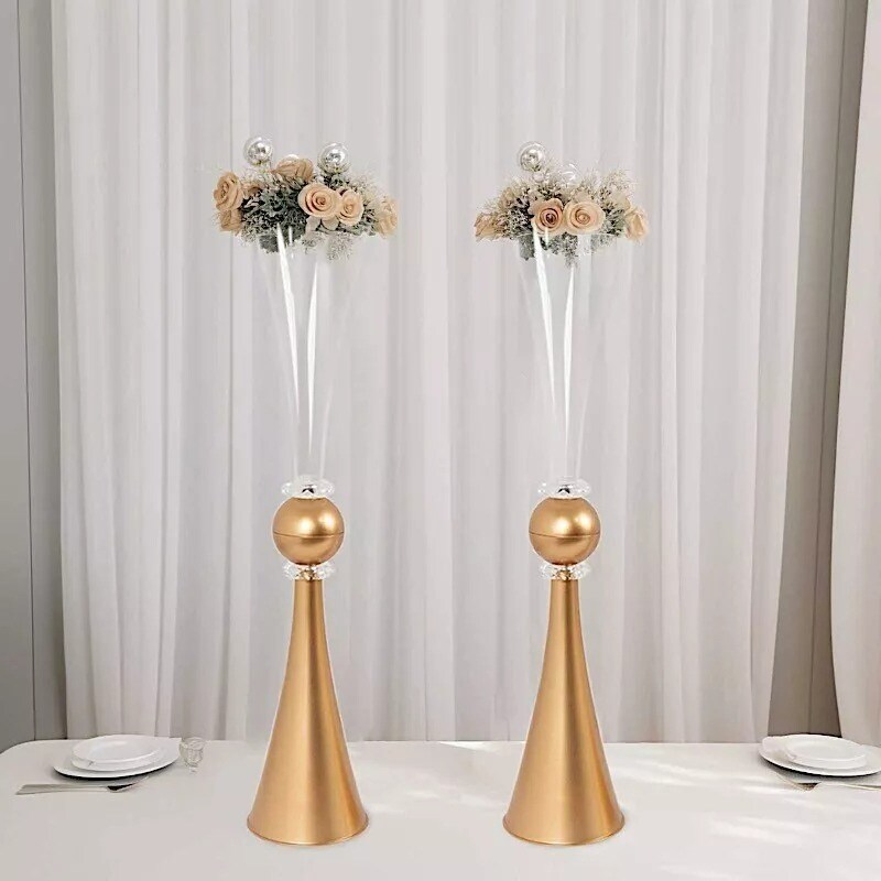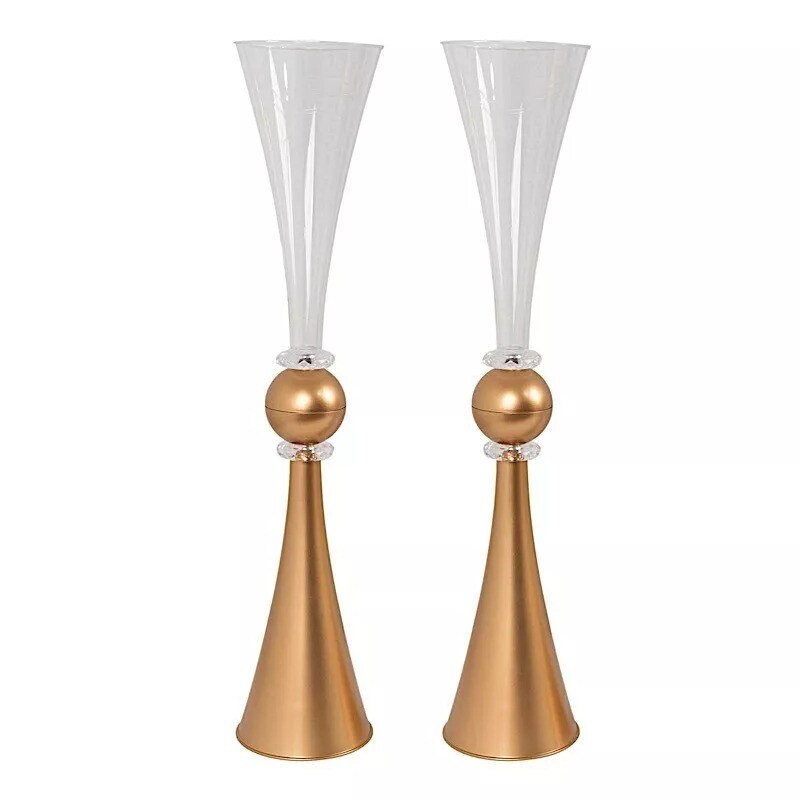 2 Clear Gold 27" Plastic Reversible Trumpet Flower Vases Crystals Party Event