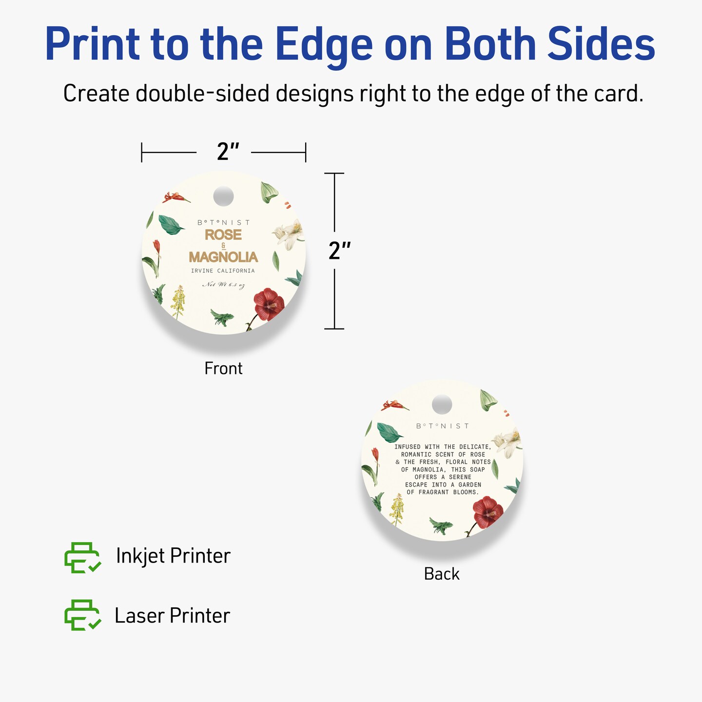 2" Diameter Round, Matte Ivory Printable Tags