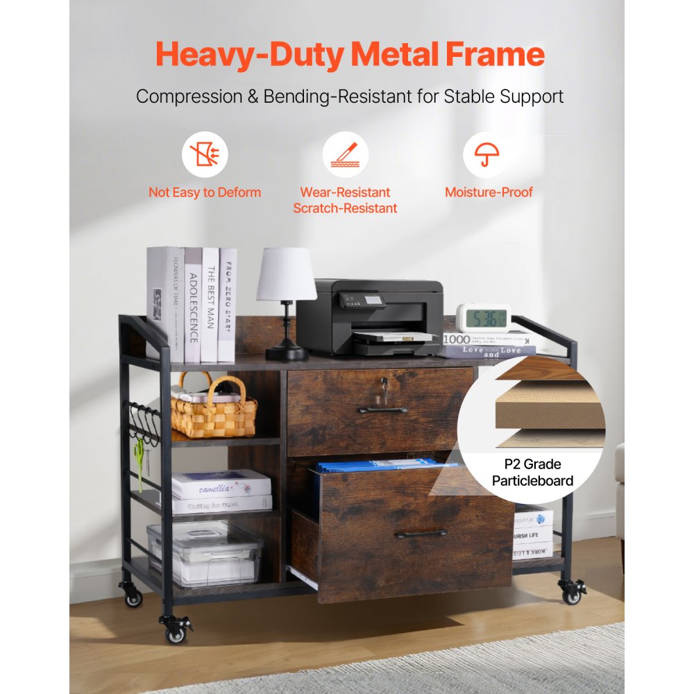 2 Drawer Metal File Cabinet Lateral Storage with Lock 6 Shelves for Letter A4 Legal