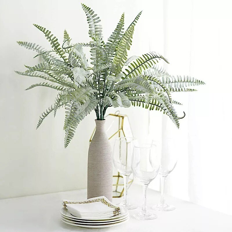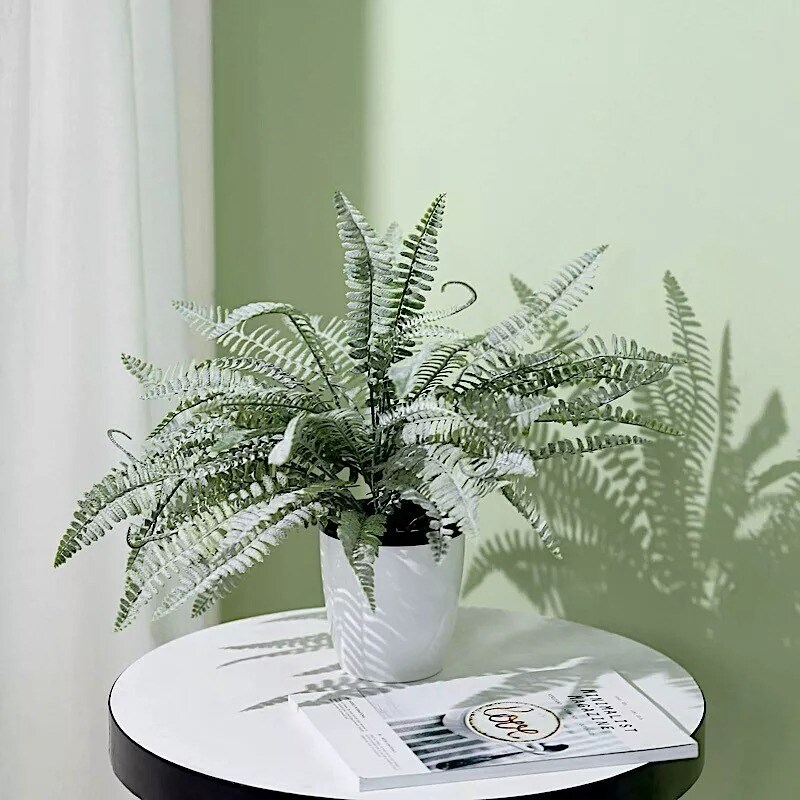 2 FROSTED GREEN 18" Faux Boston Fern ARTIFICIAL LEAVES Greenery Stems