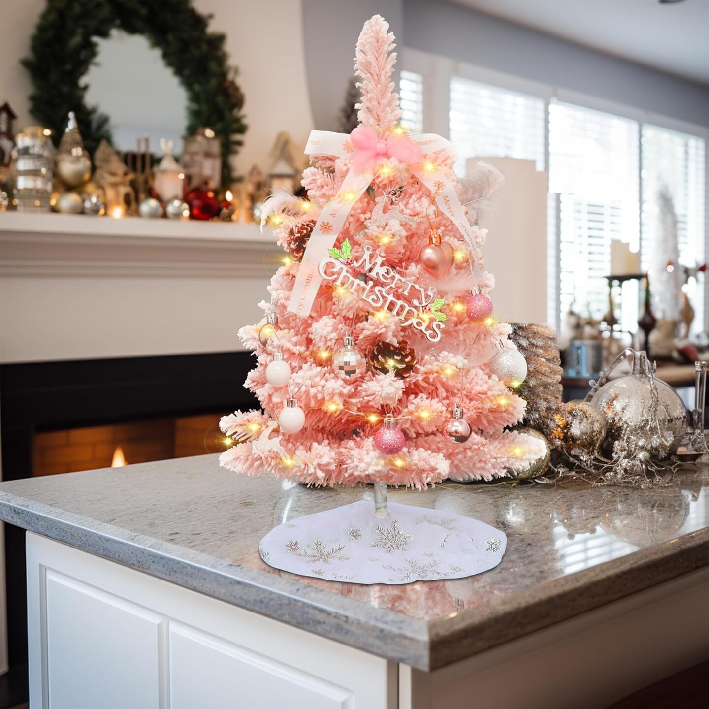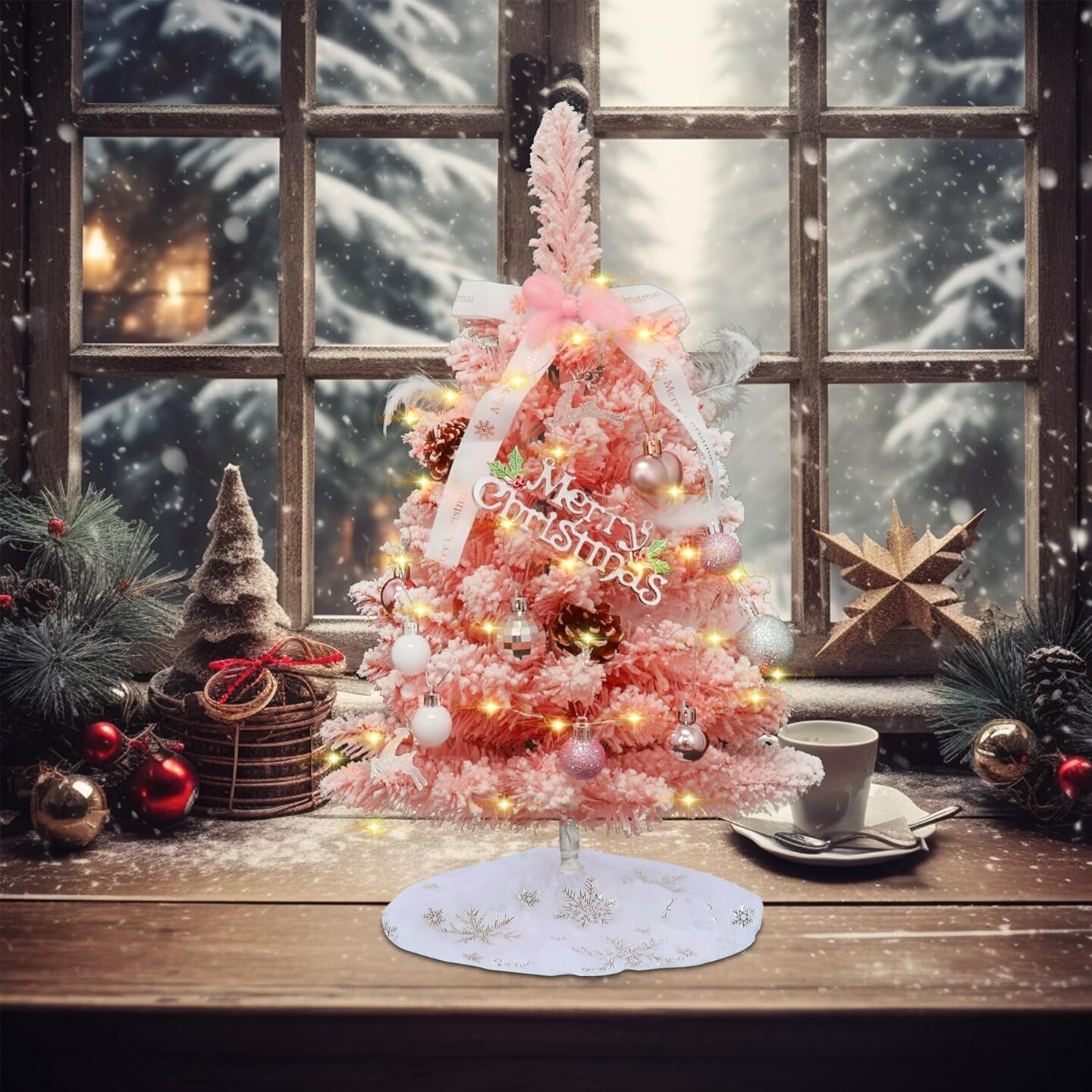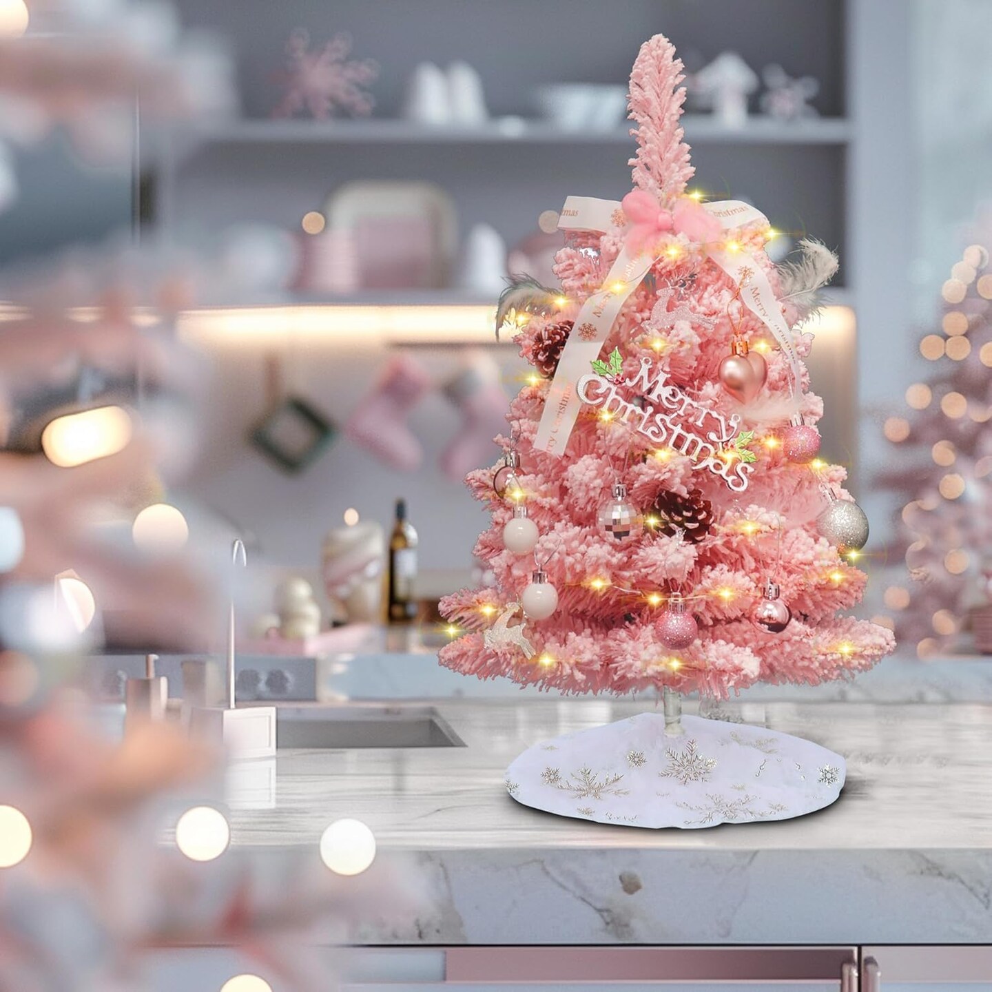 2 FT Small Pink Christmas Tree With Ornaments and Skirt