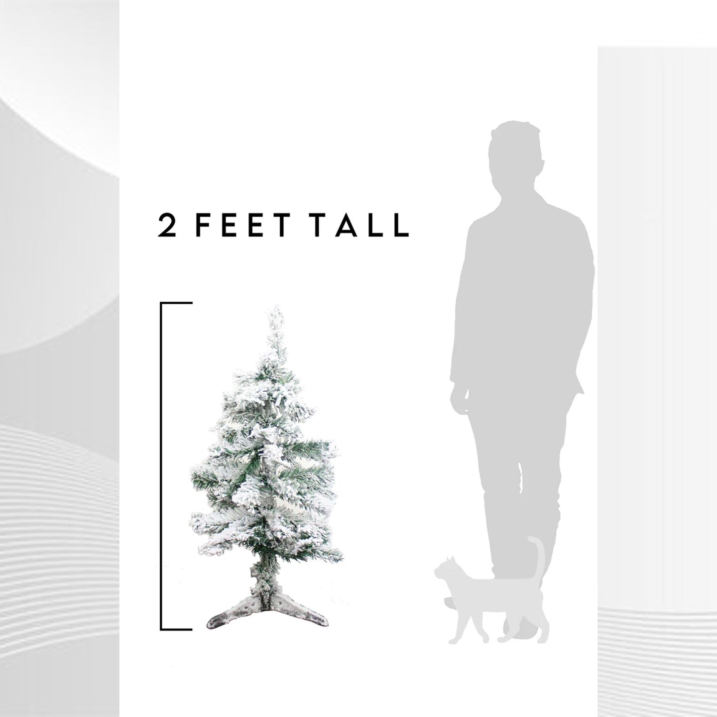 2 Ft Snow Flocked Christmas Tree with Hinged Branches and Metal Stand for Decor