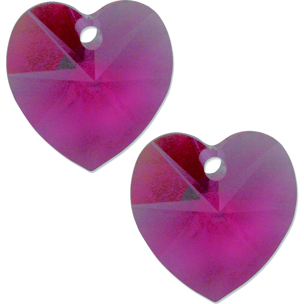 2 Fuchsia Swarovski Crystal Heart Pendant 6202 10mm