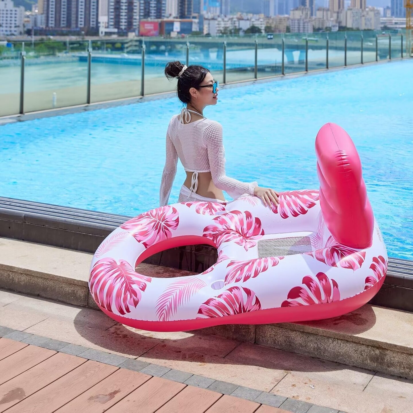 2 in 1 Floating Recliner Pool, Deluxe Inflatable Pool Float Adult with Backrest and Cup Holder, Cool Fun Pool Chair Float Bed, Pool, Beach, Enjoy Vacation, Age 15 +
