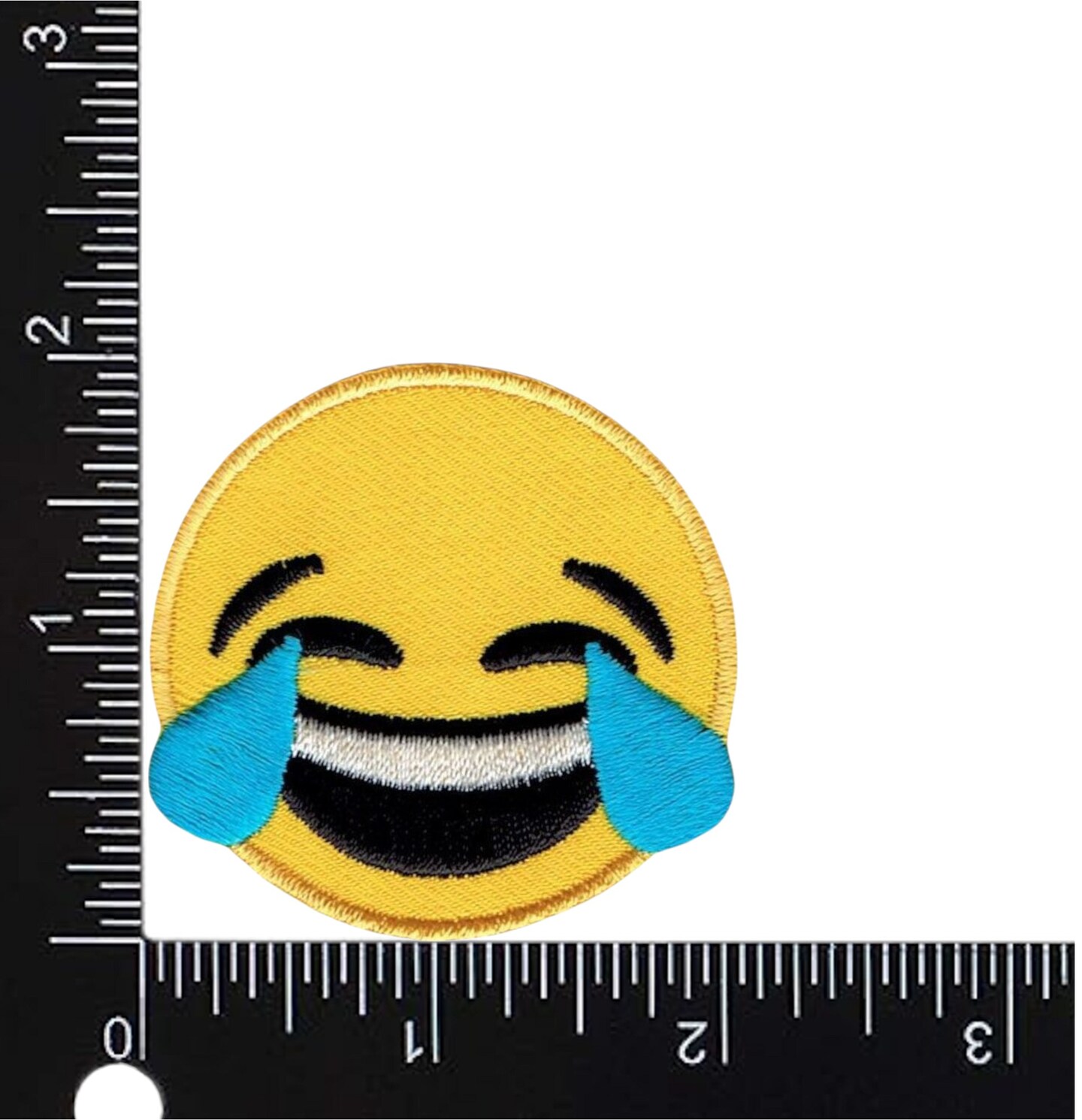 2 inch Smiling Face Laughing Tears, Embroidered, Iron on Patch
