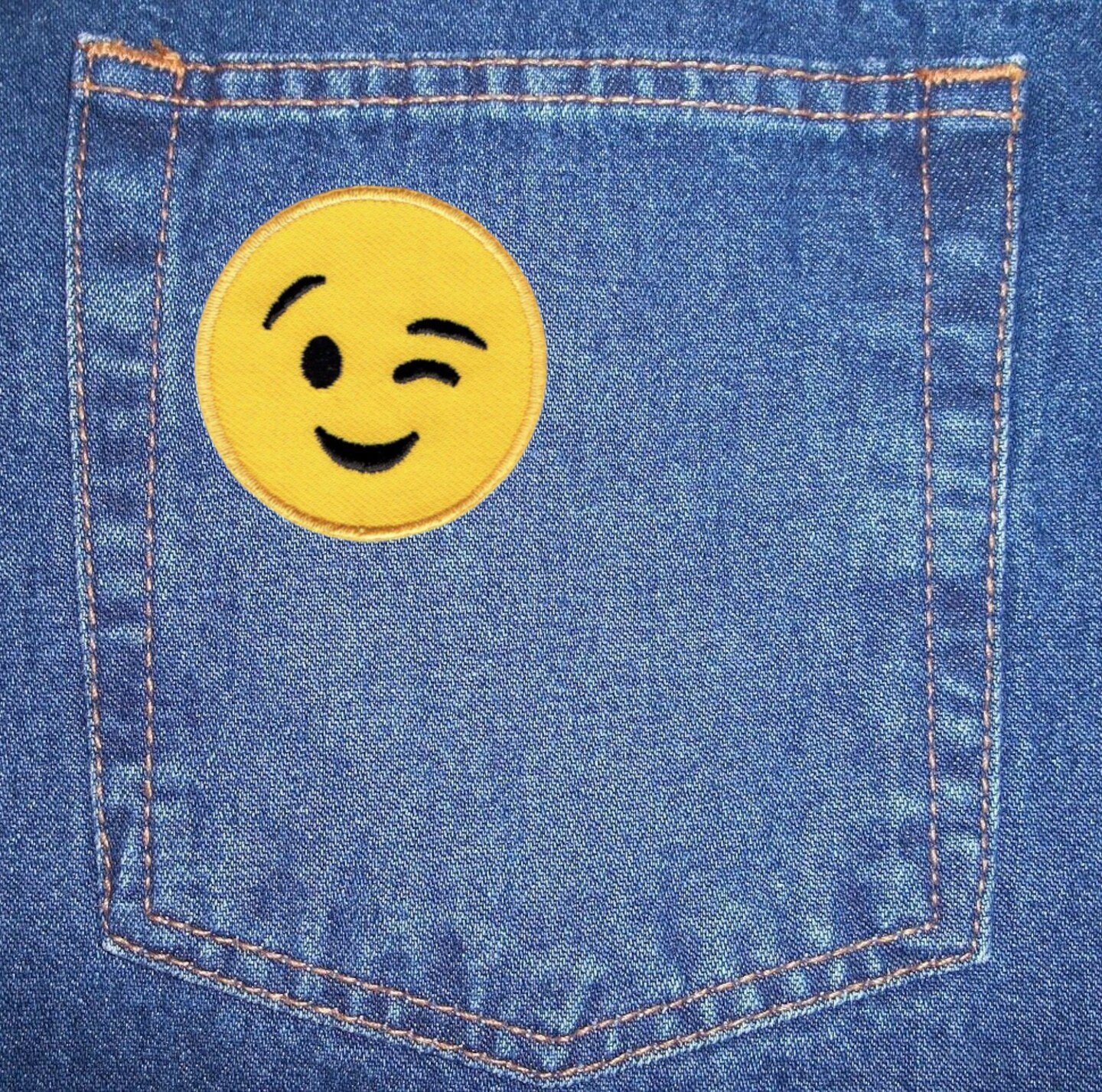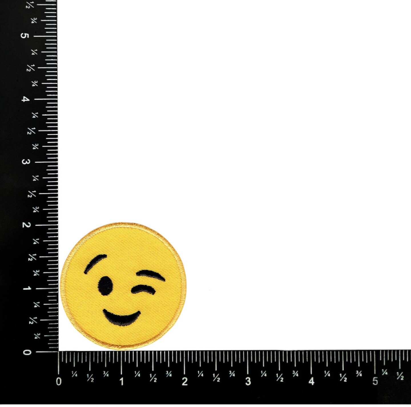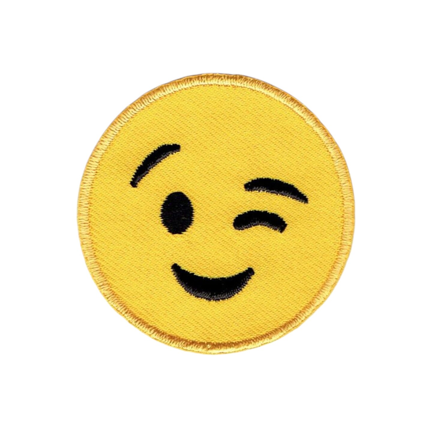 2 inch - Smiling Face - Winking Embroidered, Iron on Patch