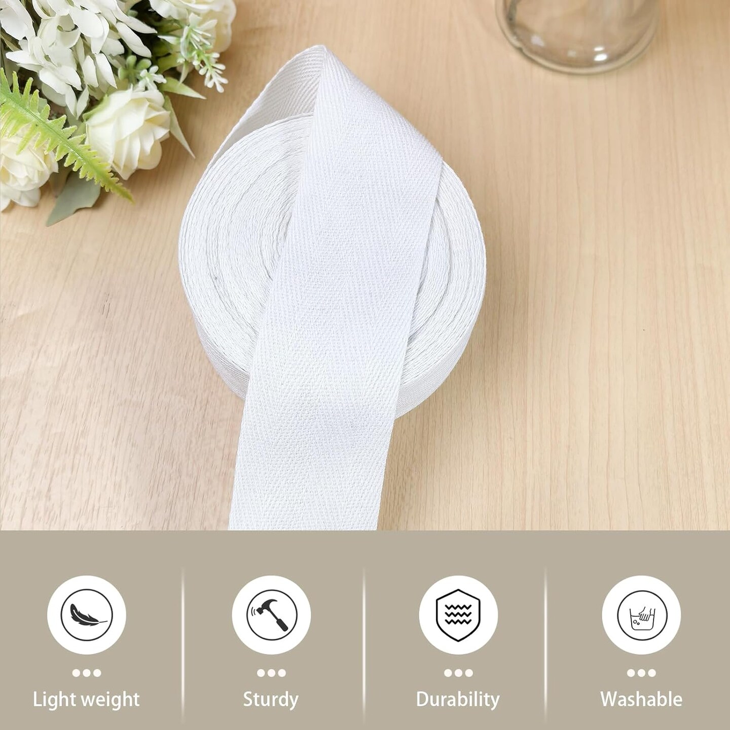 2 Inch White Cotton Herringbone Twill Tape - 15 Yards