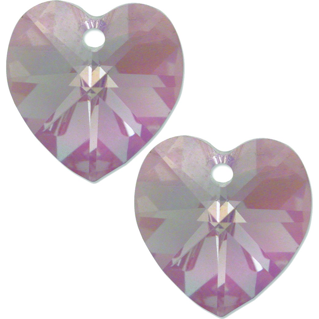 2 Lt Amethyst AB Swarovski Crystal Heart Pendant 10mm