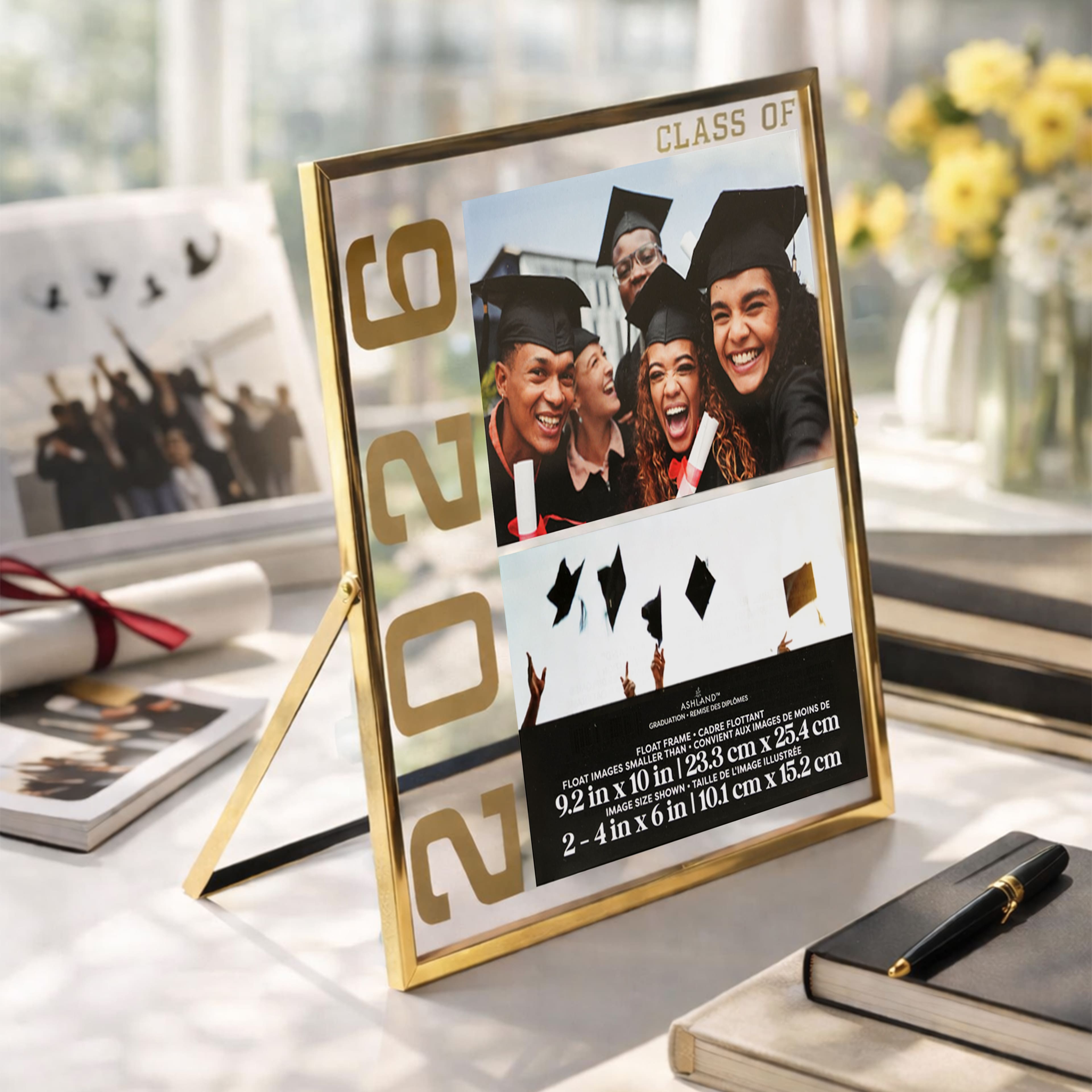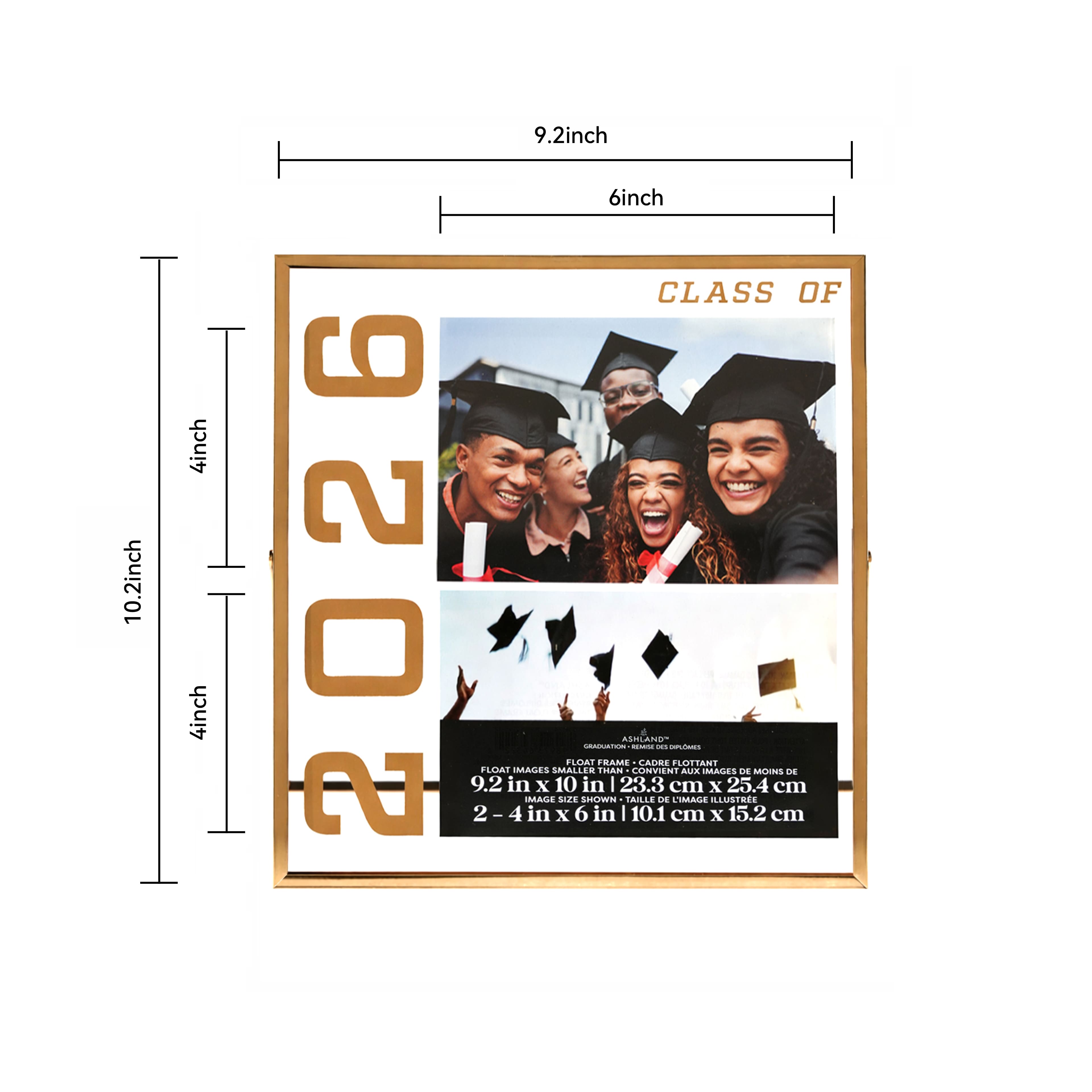 2 Opening 4" x 6" Gold 2026 Metal Tabletop Float Frame, Graduation by Ashland®