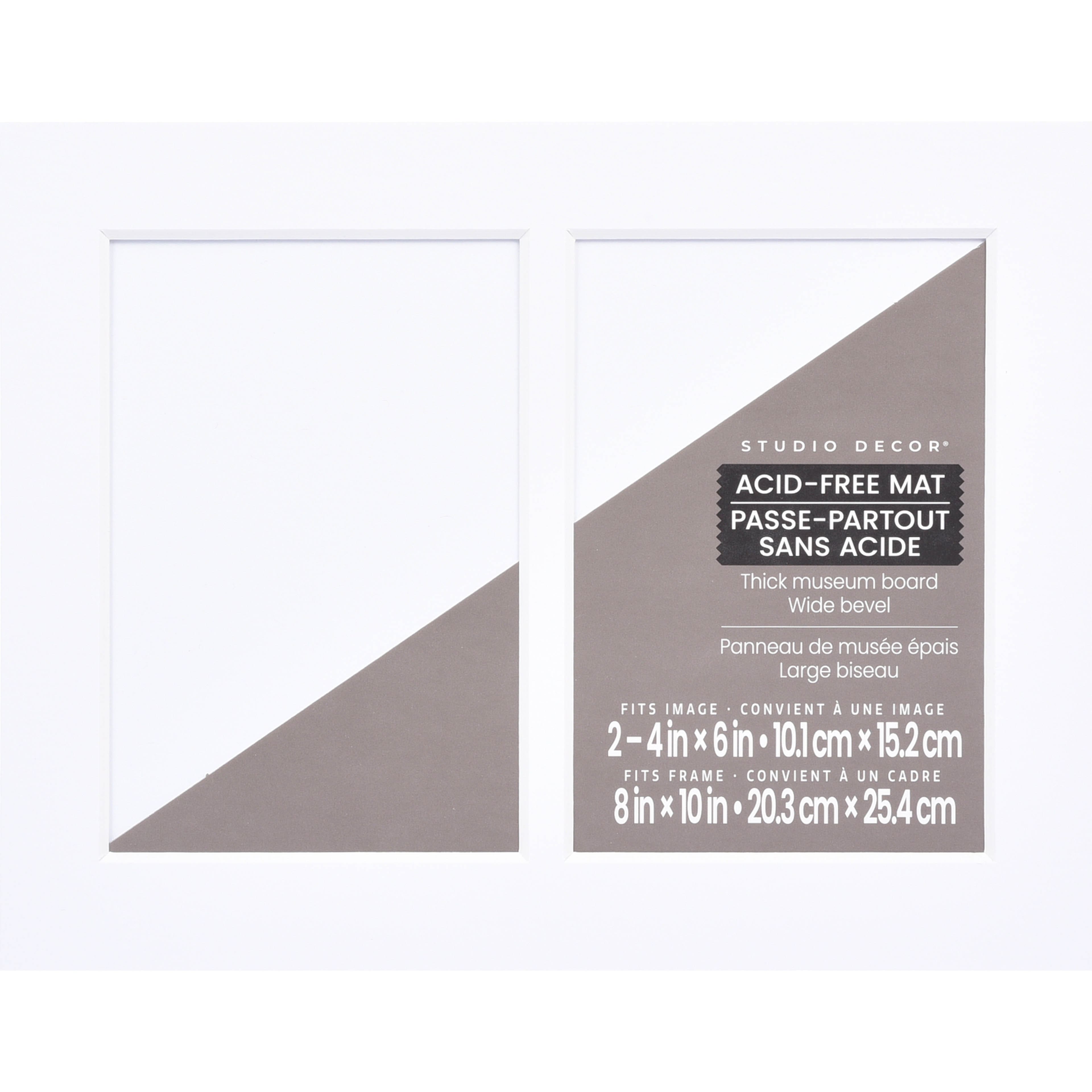 2 Opening 8" x 10" Museum White Mat by Studio Décor®, 4" x 6" Opening Size