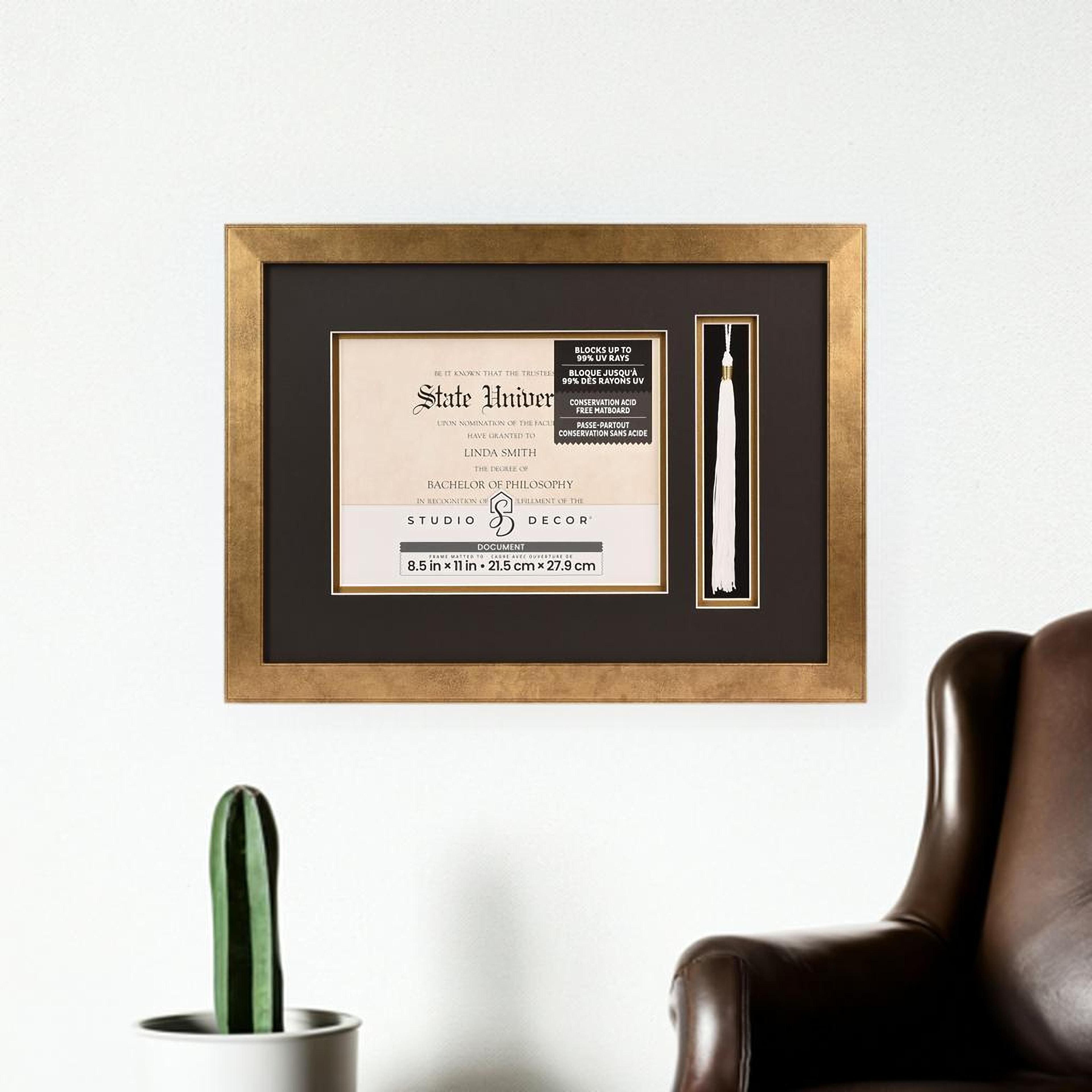 2 Opening Gold 8.5" x 11" Document & Tassel Frame with Double Mat by Studio Décor®