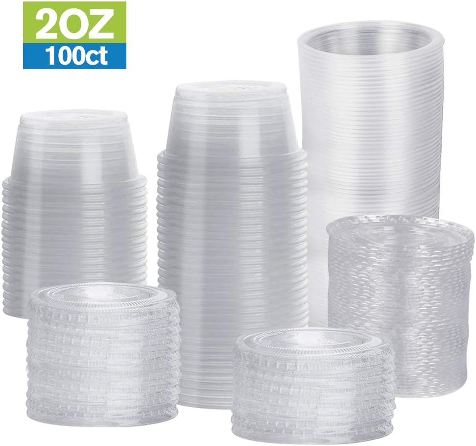 2 oz 100 Sets Disposable Plastic Cups with Lids,Shot Cups Souffle Cups