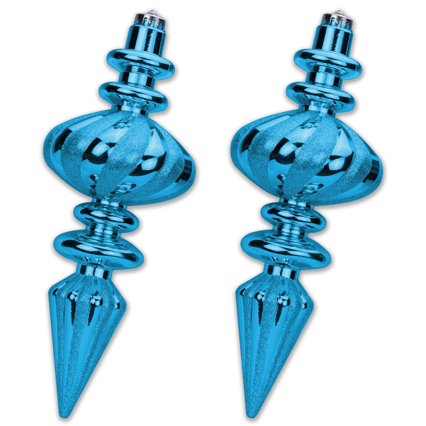 2 Pack 11" Aqua Finial Ornament with Aqua Glitter