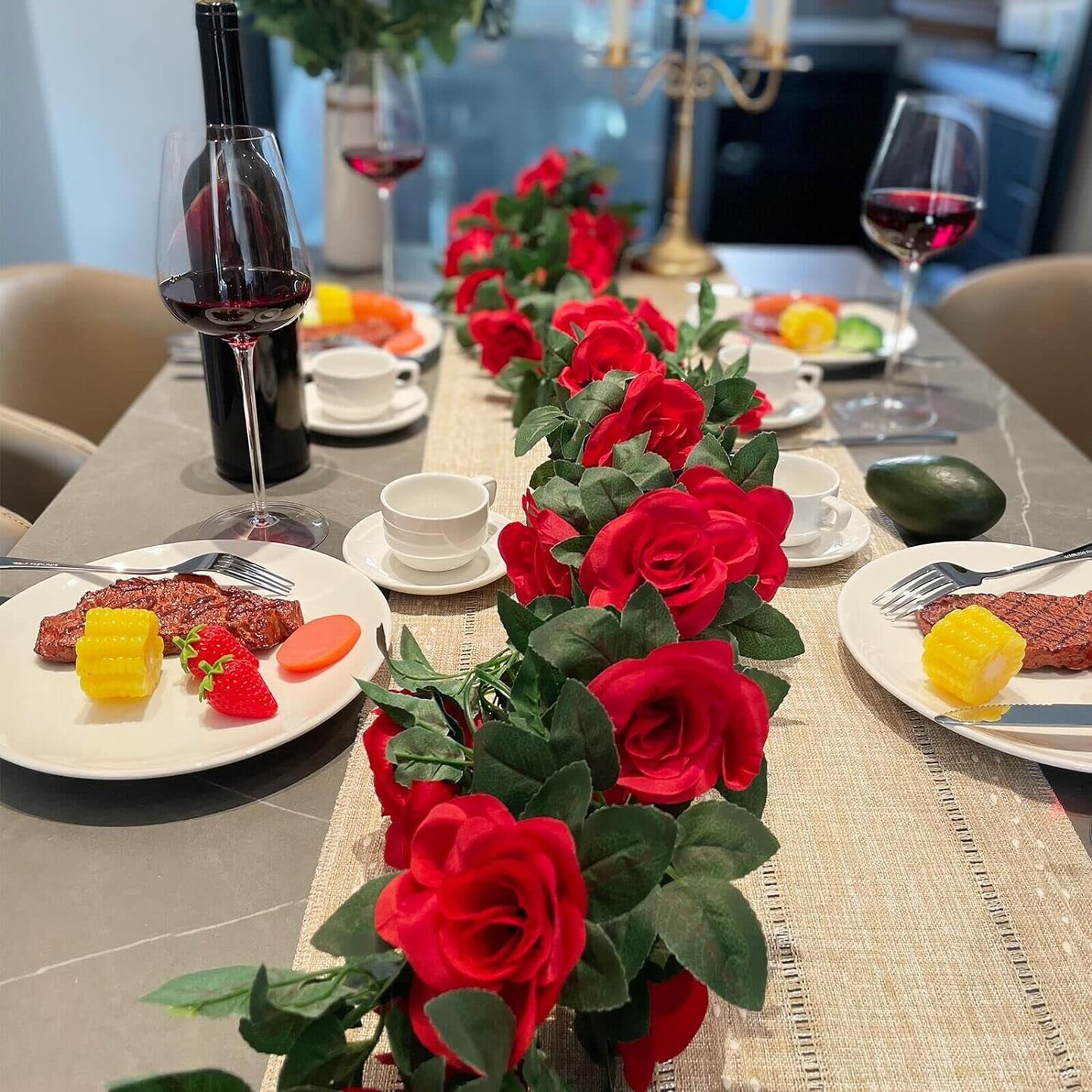 2 Pack (16FT) Artificial Rose Vine Fake Flowers Garland Hanging Silk