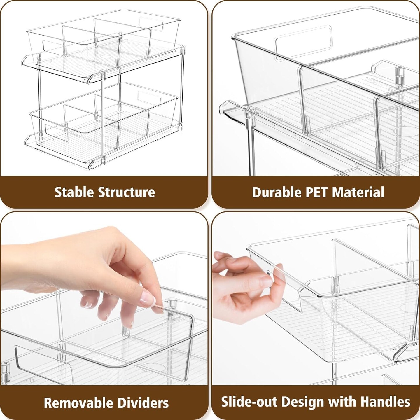 2 Pack 2-Tier Clear Storage Organizer with Dividers (Clear)