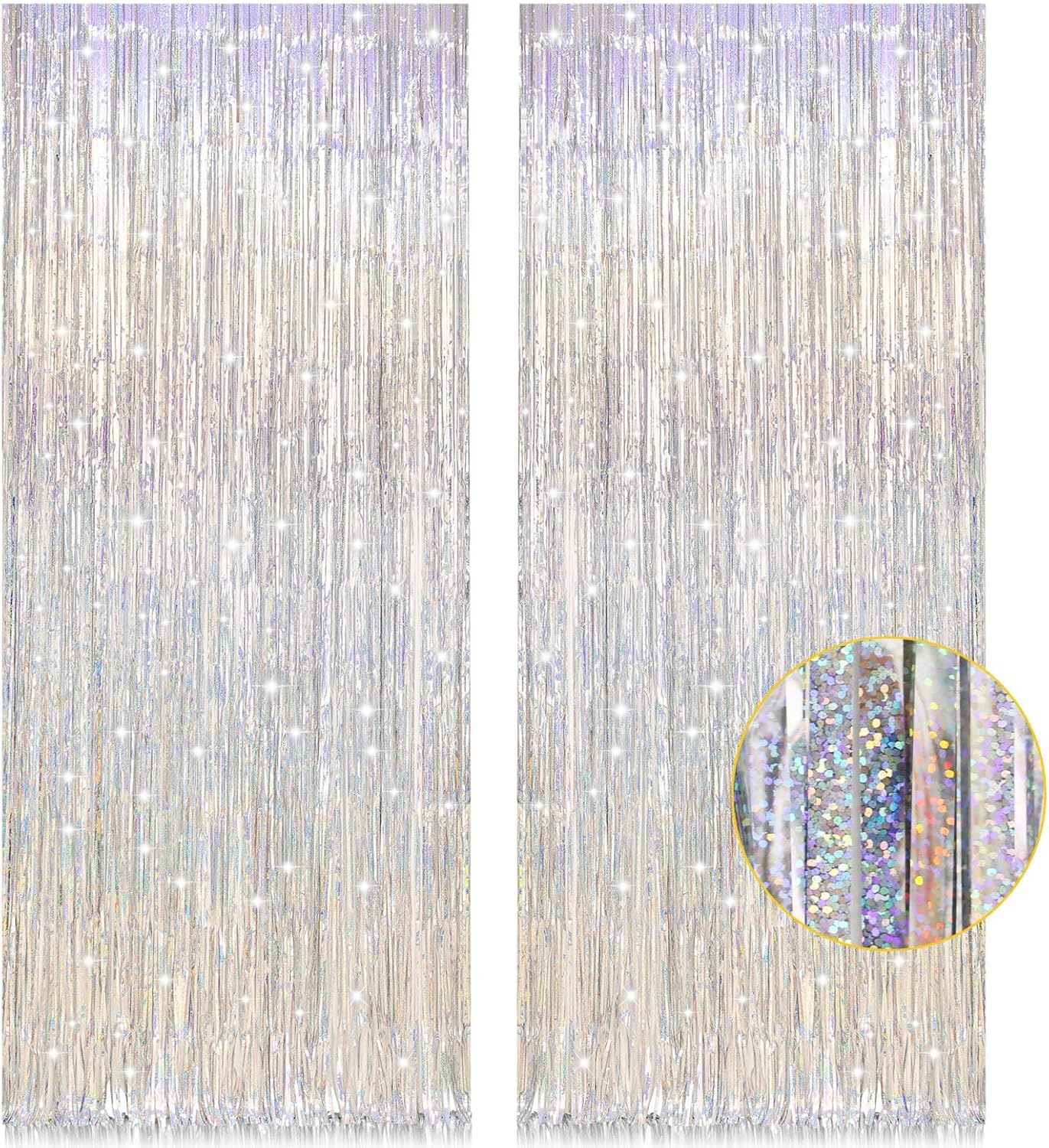 2 Pack 3.2ft x 8.2ft Silver Metallic Tinsel Foil Fringe Curtains (Silver)
