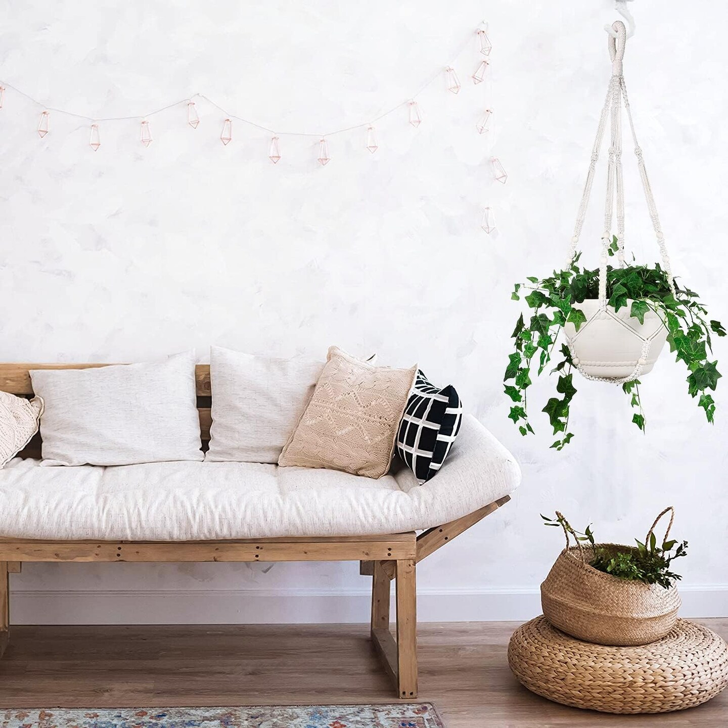 2 Pack 43 Inches Macrame Planter Hanger Large for 12 inch Pot + Swag Hook (Ivory)