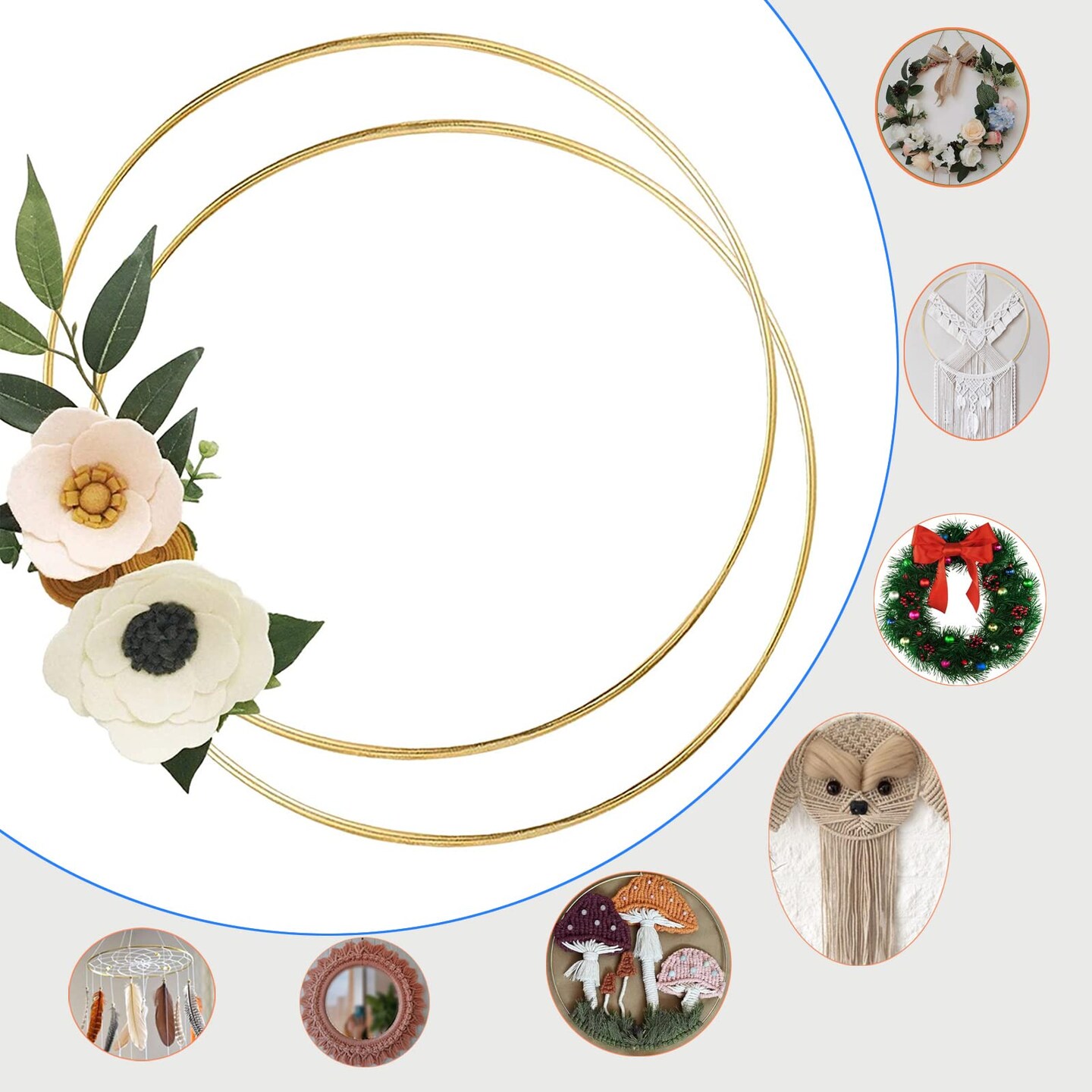 2 Pack 4/6/8/10/12/14/16/18/20 inches Metal Floral Hoop Wreath Macrame Gold Craft Hoop Rings for Making Wedding Wreath Decor, Dream Catcher and DIY Wall Hanging Crafts (4 inch)