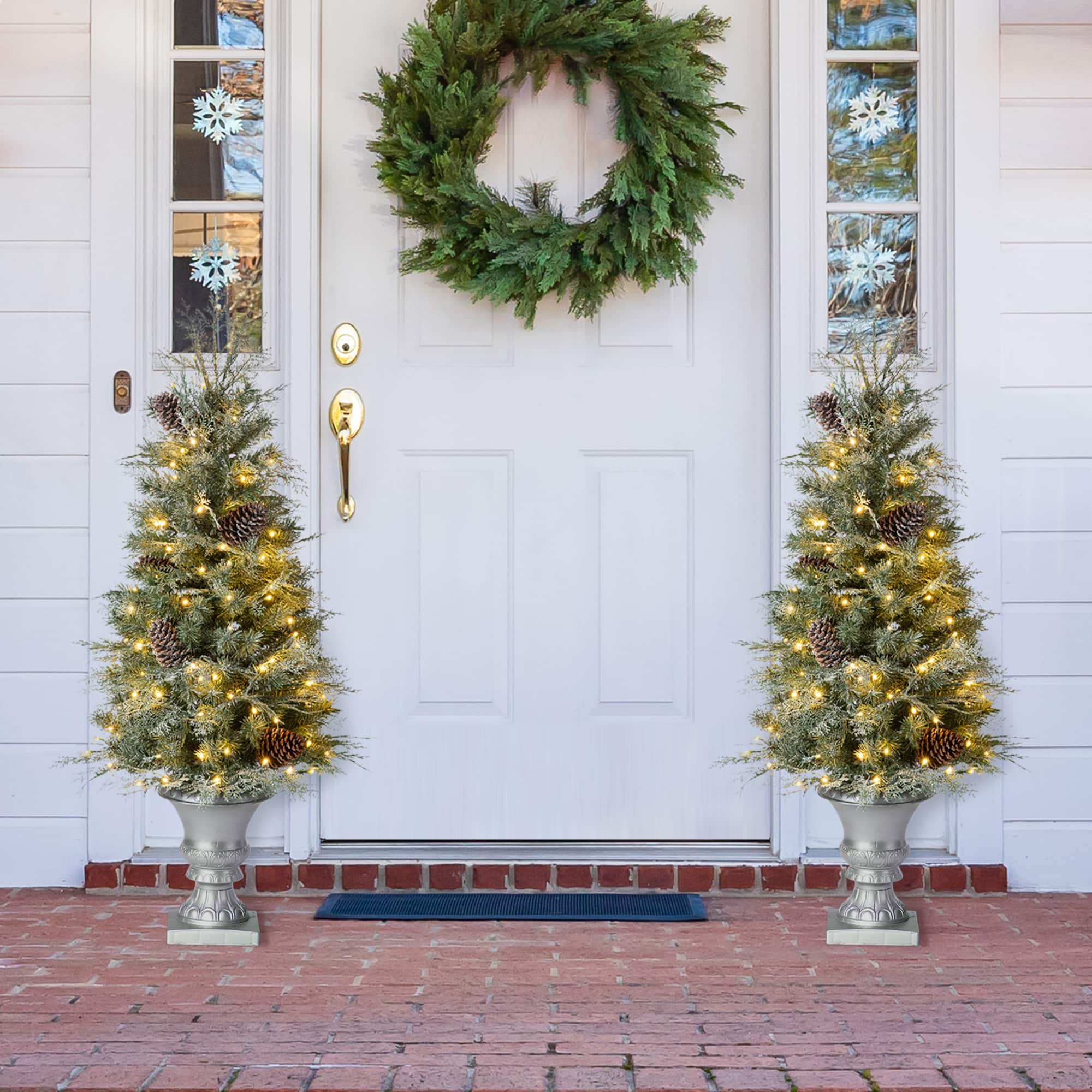 2 Pack 4ft. Pre-Lit Pine Artificial Christmas Porch Tree, Warm White LED Lights