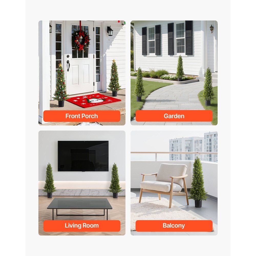 2 Pack Artificial Cedar Topiary Trees Faux Pine Plants for Indoor Outdoor Decor
