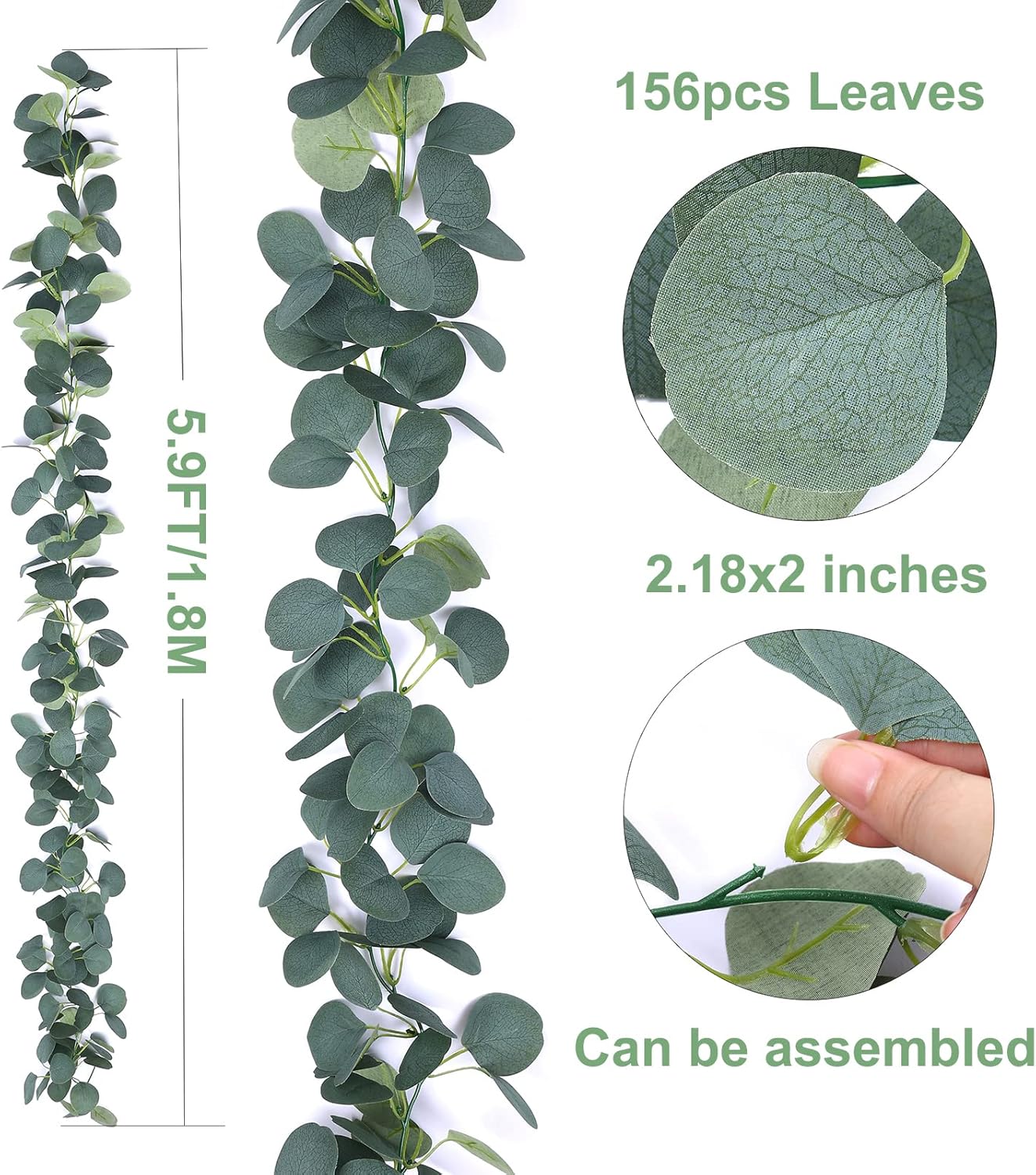 2 Pack Artificial Eucalyptus Garland – Faux Silk Silver Dollar Leaves Vines, Handmade Greenery Garland for Wedding Backdrop, Arch, Indoor & Outdoor Wall Decorations