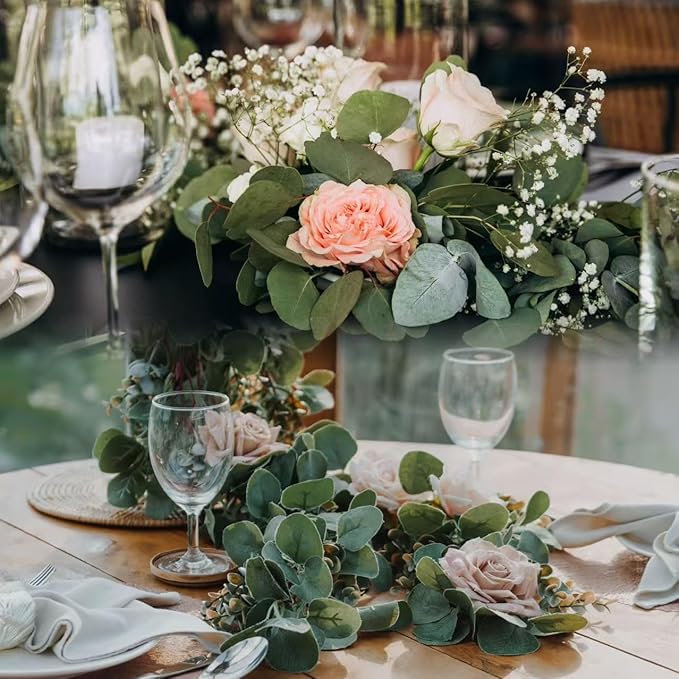 2 Pack Artificial Eucalyptus Garland Greenery Leaves Handmade 3D Silk Vines Silver Dollar Leaves Faux Leaf Plants for Wedding Wall Table Party Home Fireplace Bedroom Decor