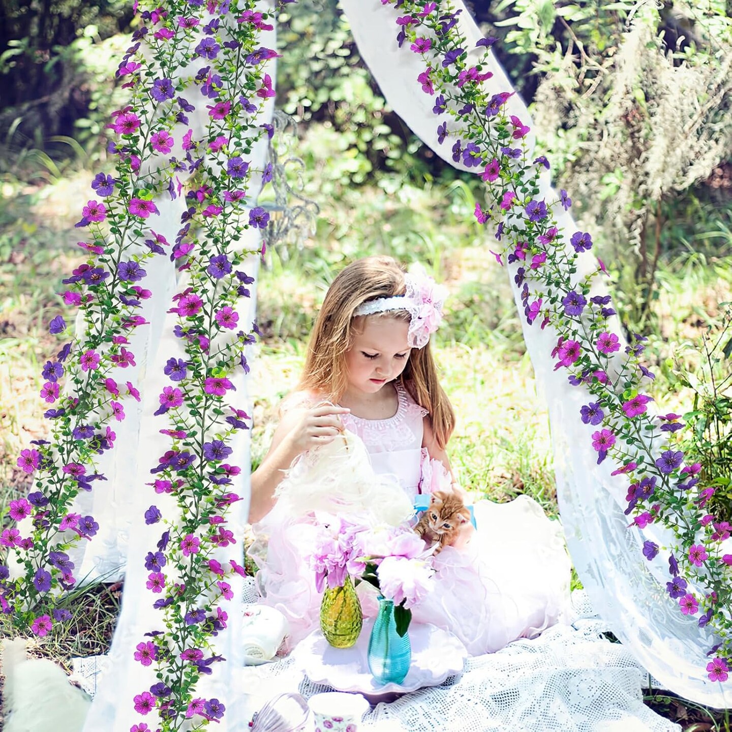 2 Pack Artificial Ivy Flower Garland – Light & Dark Purple Silk Daisy Vines for Home, Garden, Wedding, Photo Booth Backdrop & Spring/Summer Décor