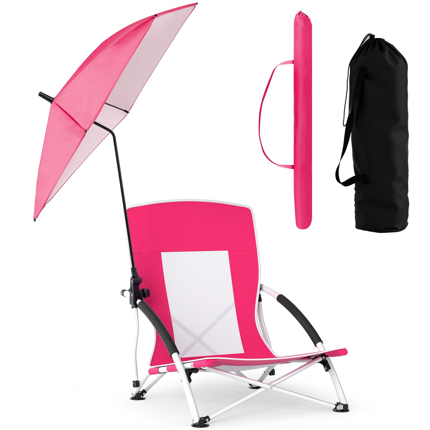 2 Pack Beach Umbrella Chair for Adults with Adjustable Parasol