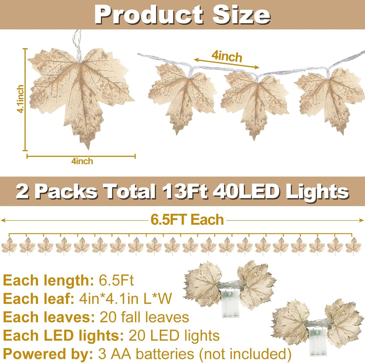 2 Pack Fall Decor Fall Garland with Lights Fall Decorations for Home, Lighted Maples Leaves Garland Total 13Ft 40LED Battery Operated Autumn Harvest Halloween Thanksgiving Decor Indoor Outdoor