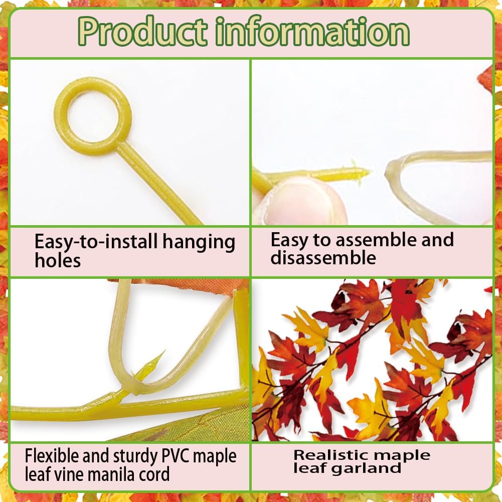 2 Pack Fall Maple Leaf Garland Decor Autumn Hanging Vine Garland(Maple Leaf-Y)12.28 x 11.73 x 2.68 inches