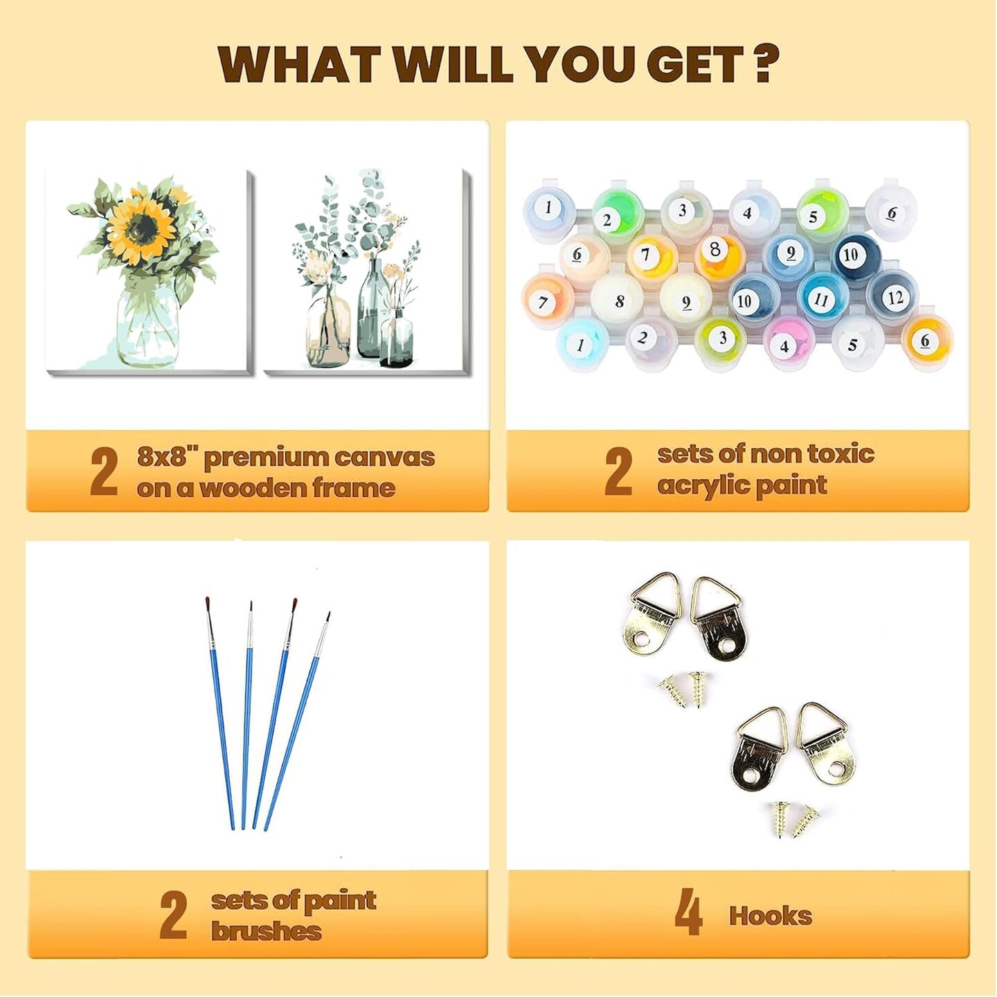 2 Pack Framed Paint by Numbers Kit,Easy DIY Acrylic Flower Watercolor Paint by Numbers Kits on Canvas,Paint by Number for Adults Beginners for Home Wall Decor