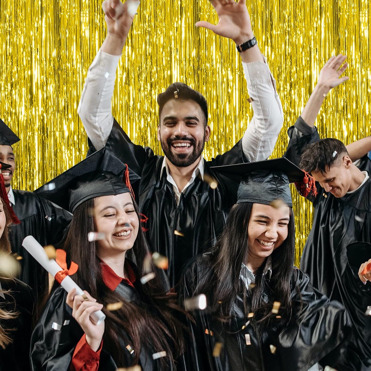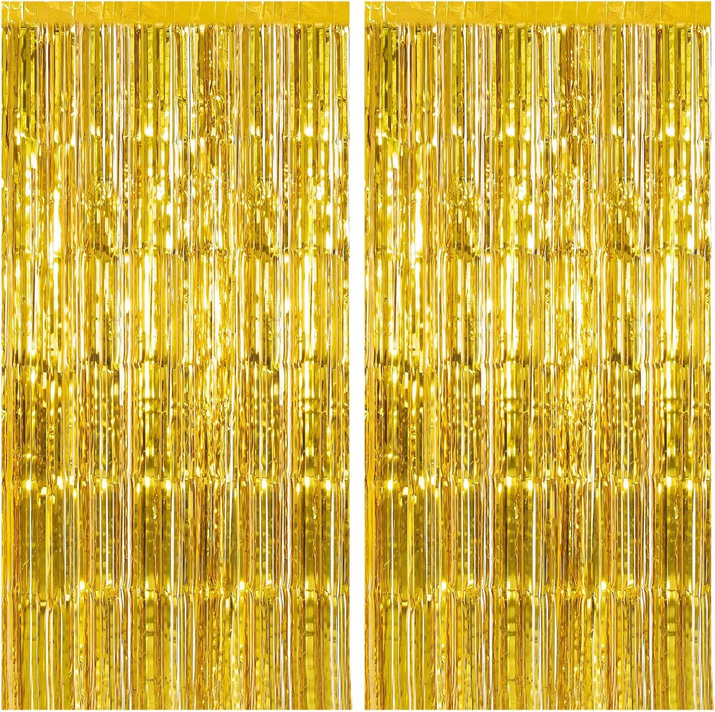 2 Pack Gold Foil Curtain Backdrop Party Decorations (Gold)