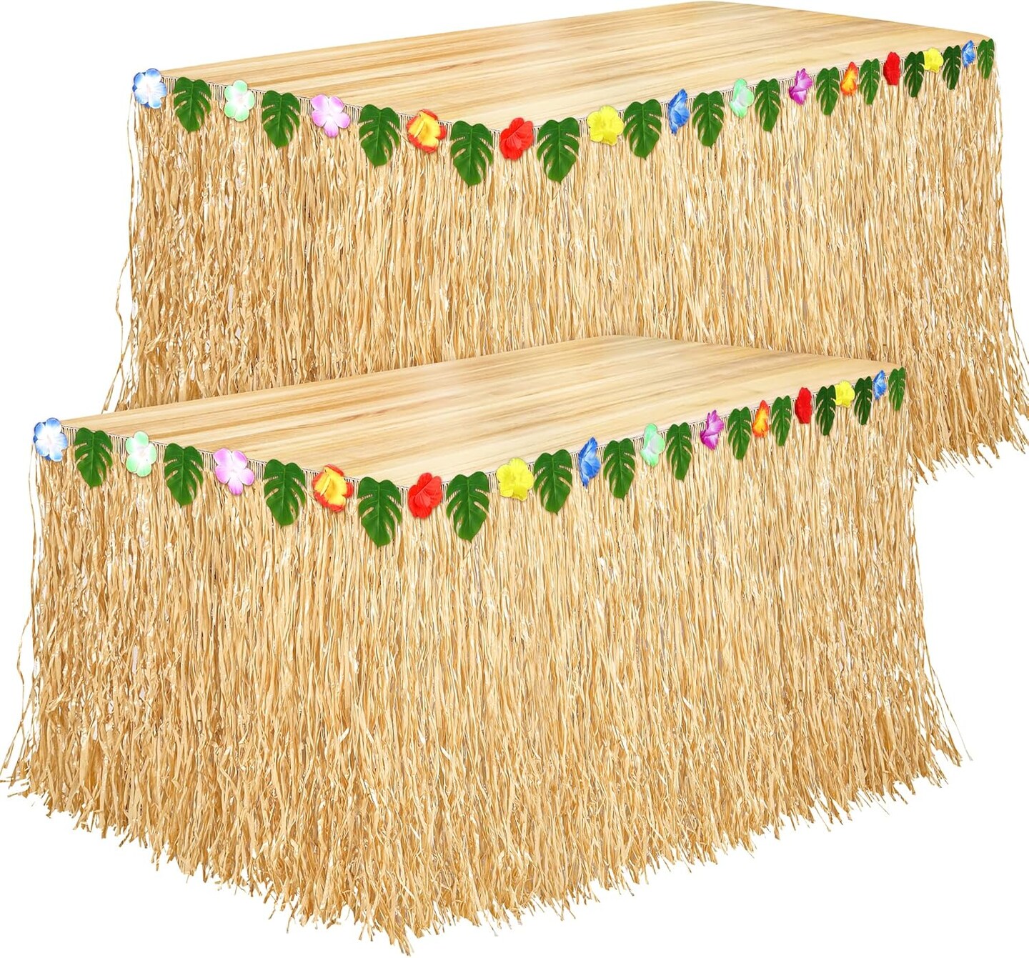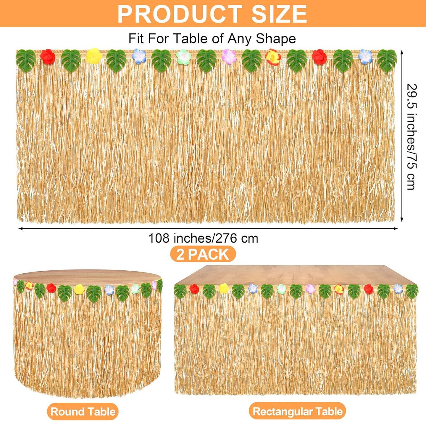 2 Pack Grass Table Skirt Hawaiian 108 x 30 Inch