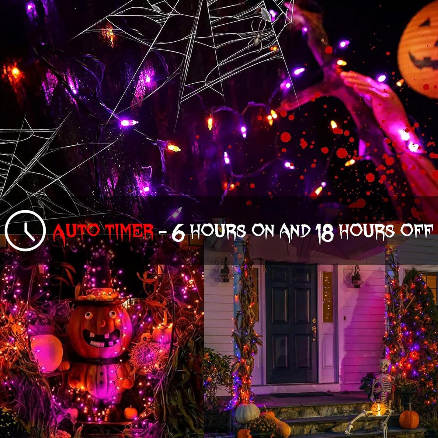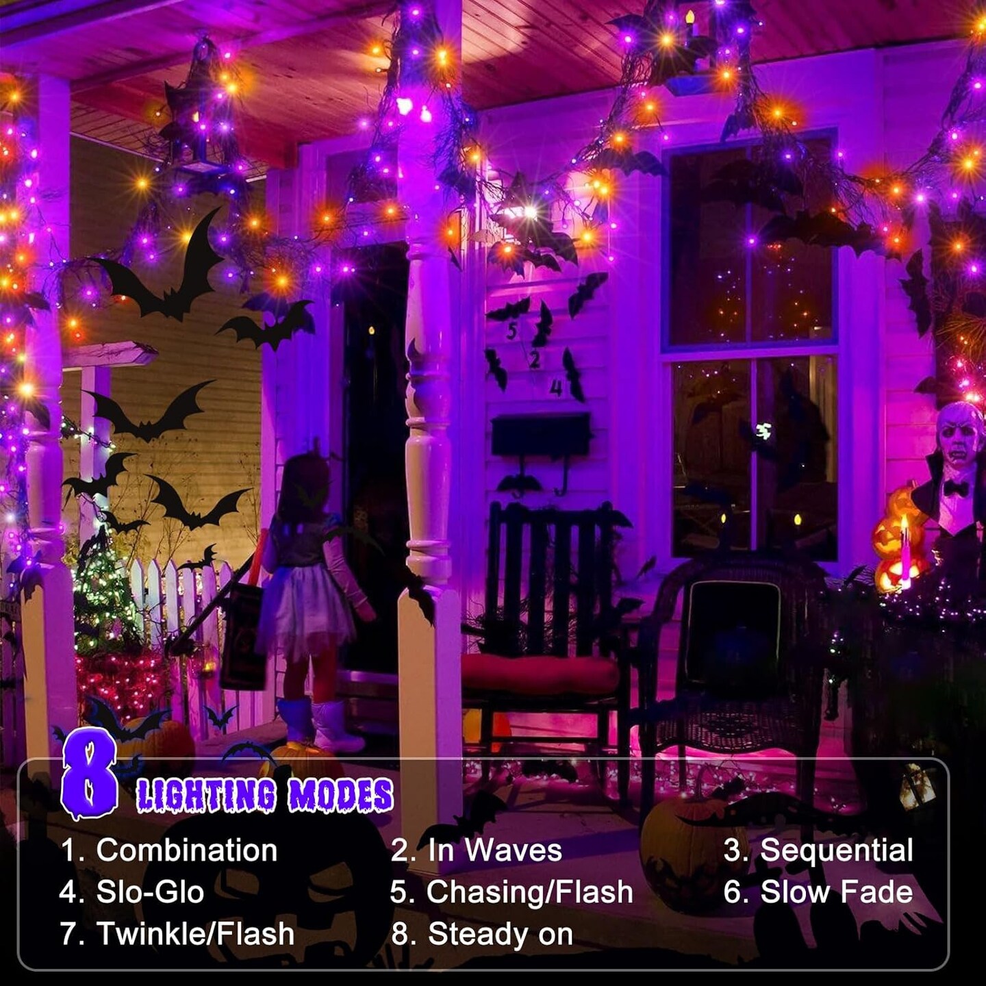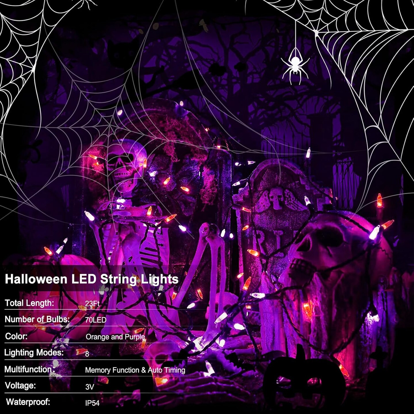 2 Pack Halloween Mini String Lights Battery Operated - 46Ft 140 LED (Purple & Orange)