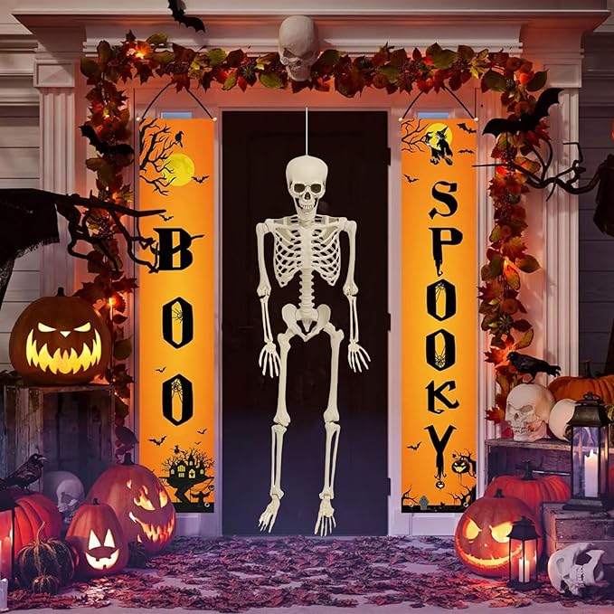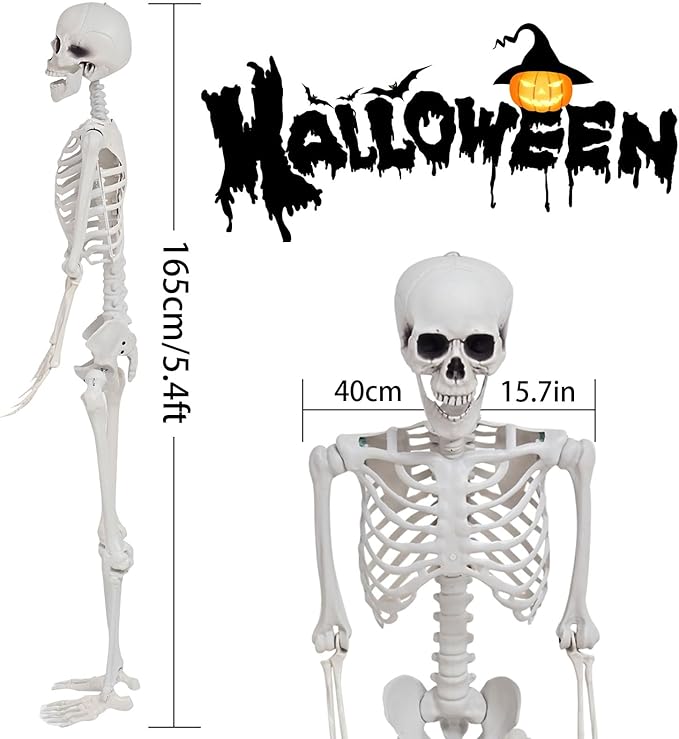 2 Pack Halloween Skeleton Life Size 5.4ft - Poseable Large Plastic Skeletons, Human Like Realistic Full Body Bones with Posable Joints for Halloween Indoor/Outdoor Decorations