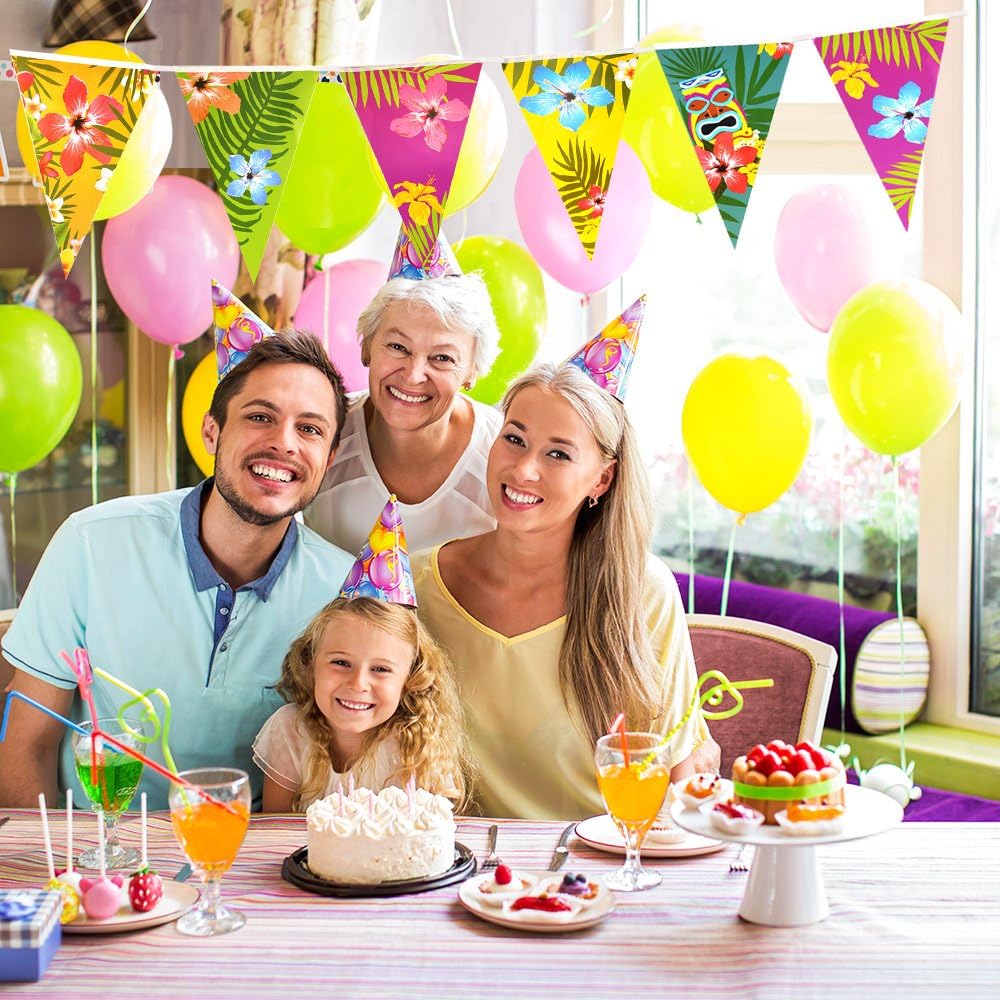 2 Pack Hawaiian Bunting Banners Luau Tropical Bunting 6 Meters for Summer Luau Tiki Beach Party Decorations