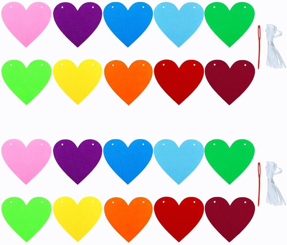 2 Pack Heart Garland Valentines Colorful Heart Banner for DIY Wedding Anniversary Rainbow Party Decorations