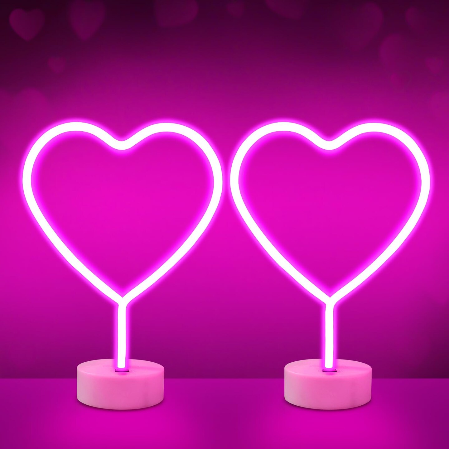 2 Pack Heart Neon Signs, LED Lights Battery Operated or USB Powered Decoration Lamp, Neon Lights Decor for Valentine's Day Gifts, Wedding, Party, Pink Room Decor (Pink Heart)