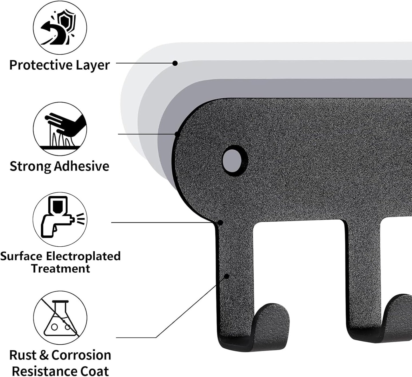 2 Pack Key Holder for Wall,Key Hooks with 10 Hooks,Key Holder Wall Mount Self Adhesive, Key Rack for Wall No Drill for Living Room, Kitchen, Bathroom, Garage (Black)