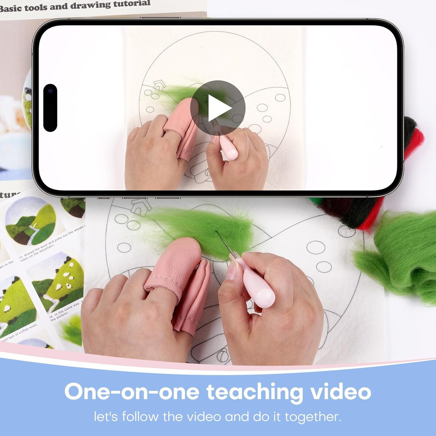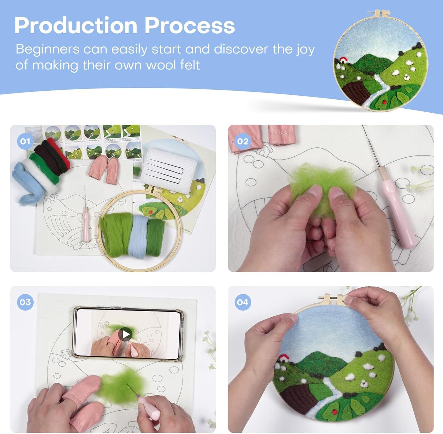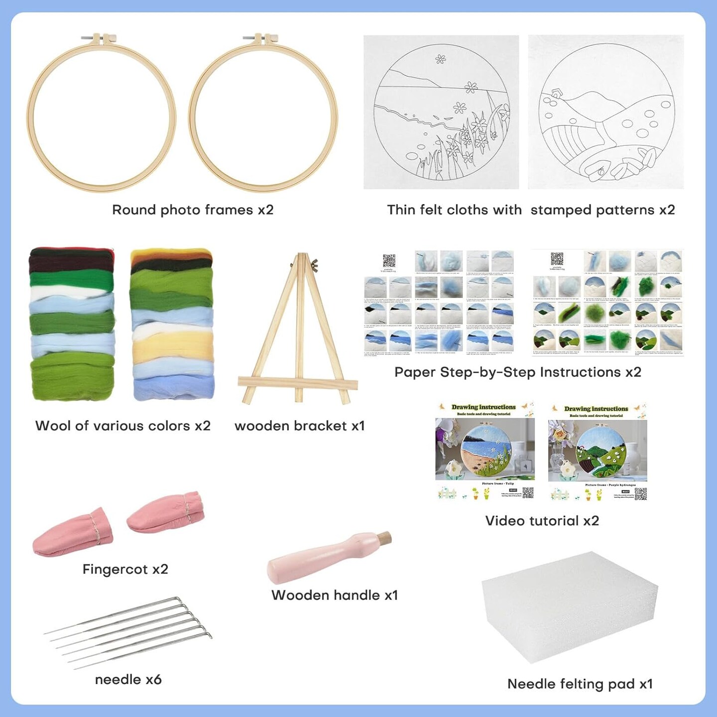 2 Pack Needle Felting Kit,Felt Painting Kit for Beginners, DIY Craft Kit with Picture Frame,Felted Fabric,Wool,Needle,Foam Pad and Instructions for Home Decoration (Mountain&Beach)